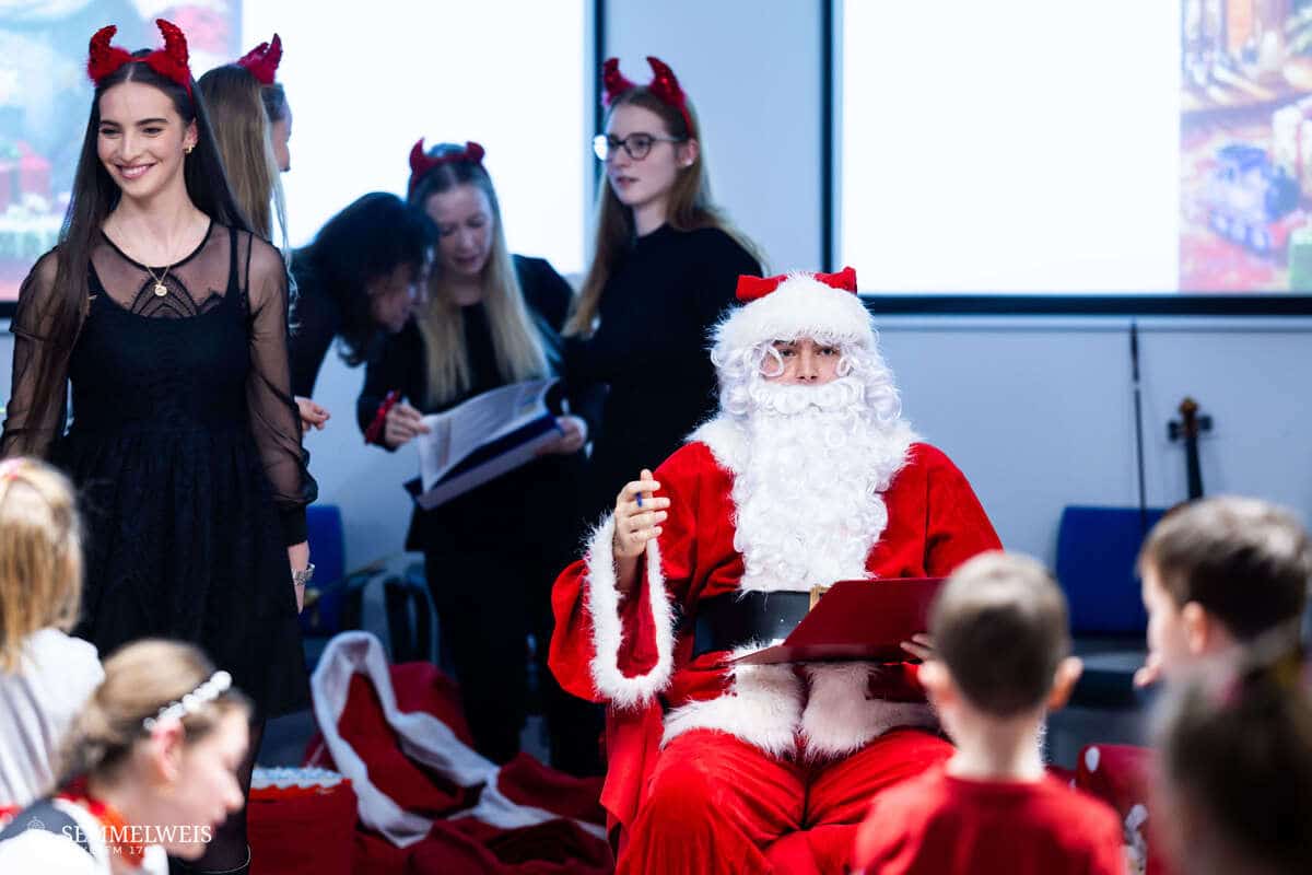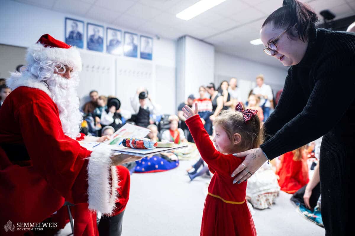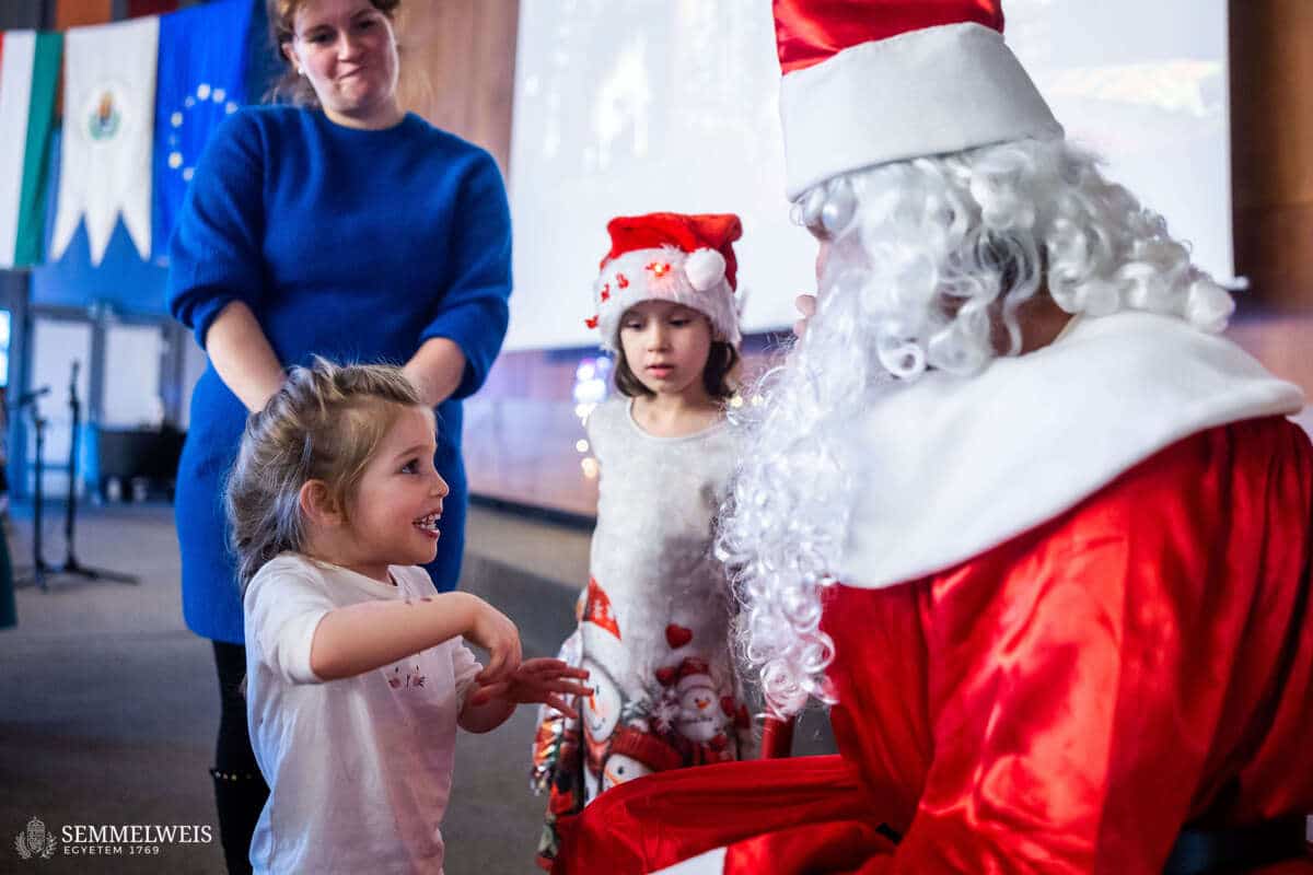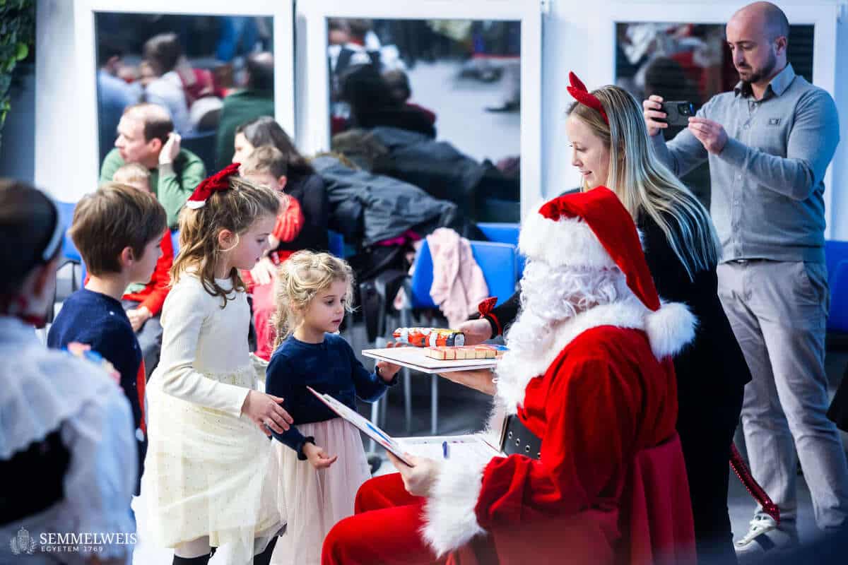 A Családbarát Egyetem Központ által szervezett központi egyetemi Mikulás-ünnepségre 400 gyermek érkezett szülőkkel, kísérőkkel a Nagyvárad téri Elméleti Tömb (NET) aulájába december 6-án délelőtt. A hangulatot az Eszterlánc zenekar koncertje, valamint a Buborék Színház interaktív gyermek színdarabja és közös éneklés alapozta meg a Mikulás érkezéséig, akit dr. Merkely Béla rektor konferált fel, köszöntve a gyerekeket és szüleiket, nagyszüleiket.