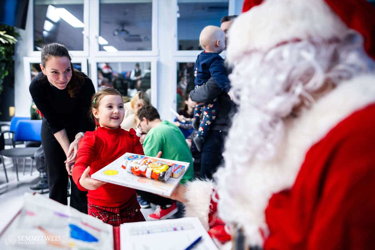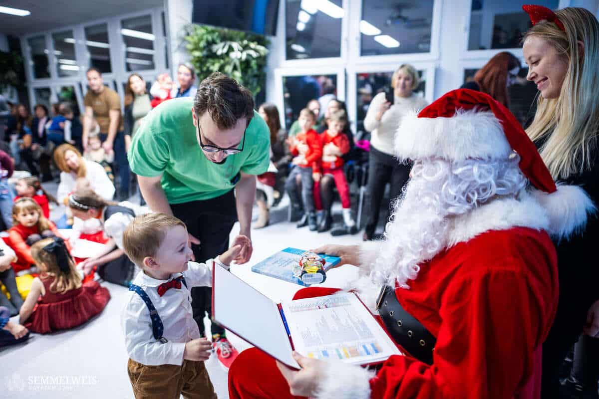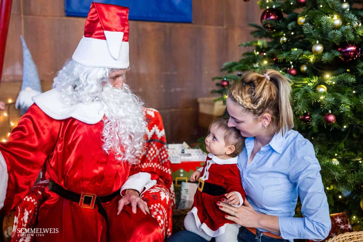 A Semmelweis Egyetem Elnök utcai Napköziotthonos Óvodájában december 5-én délelőtt járt a Mikulás. A várakozást az óvónénik mesejátéka színesítette, a Mikulás levese című mesét játszották el a gyerekeknek, majd a Mikulás megérkezésekor minden gyermekcsoport megajándékozta őt versekkel, dalokkal, amikre előre gondosan felkészültek a gyerekek – foglalta össze honlapunknak Gál Edit óvodavezető. Az ajándékcsomagok átadása után jutott még idő egy közös fényképre is a Mikulással, illetve egy kis beszélgetésre a gyerekekkel.