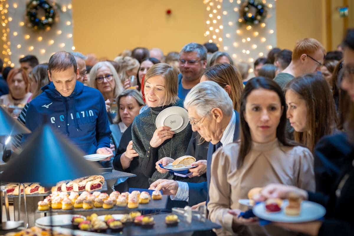 „Szép hagyományunk, hogy ezekben a rohanással teli, sűrű napokban megállunk egy csésze forró teára és egy szelet süteményre kollégáink körében. Ezzel nemcsak megelőlegezzük a meghitt családi pillanatokat, de a Semmelweis család körében is igyekszünk megteremteni azokat” – kezdte ünnepi köszöntőjét dr. Merkely Béla. „Tudom, hogy ilyenkor év végén mindenki igyekszik még egy kicsit rátenni a tűzre, belehúzni a munkába, a lehető legtöbb ügyet elintézni – a Semmelweis-polgárokra ez különösen igaz. Mégis fontosnak tartom, hogy ne csak a féket hirtelen behúzva essünk be a karácsonyfa alá – hanem lélekben is megérkezzünk oda” – fogalmazott a rektor.