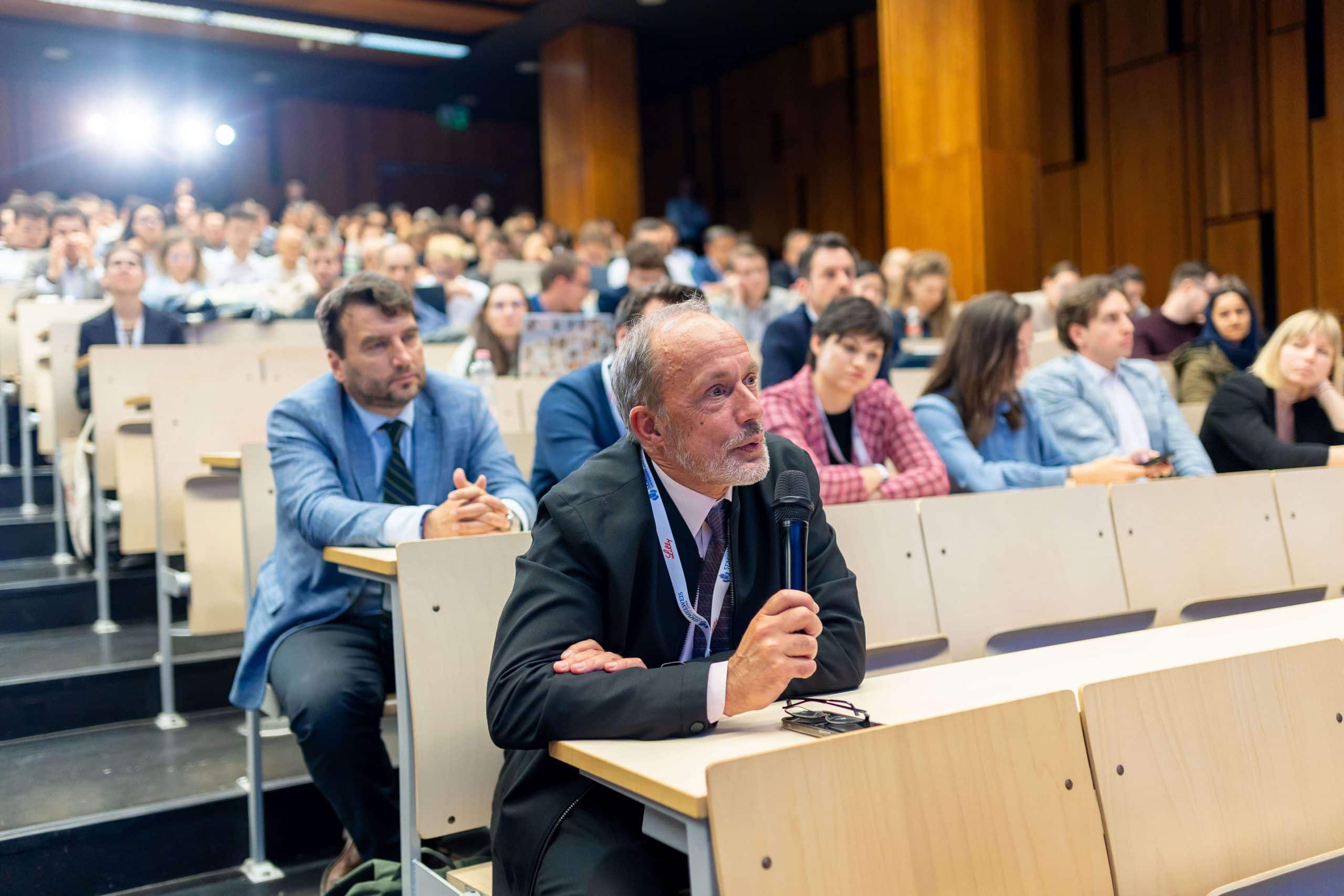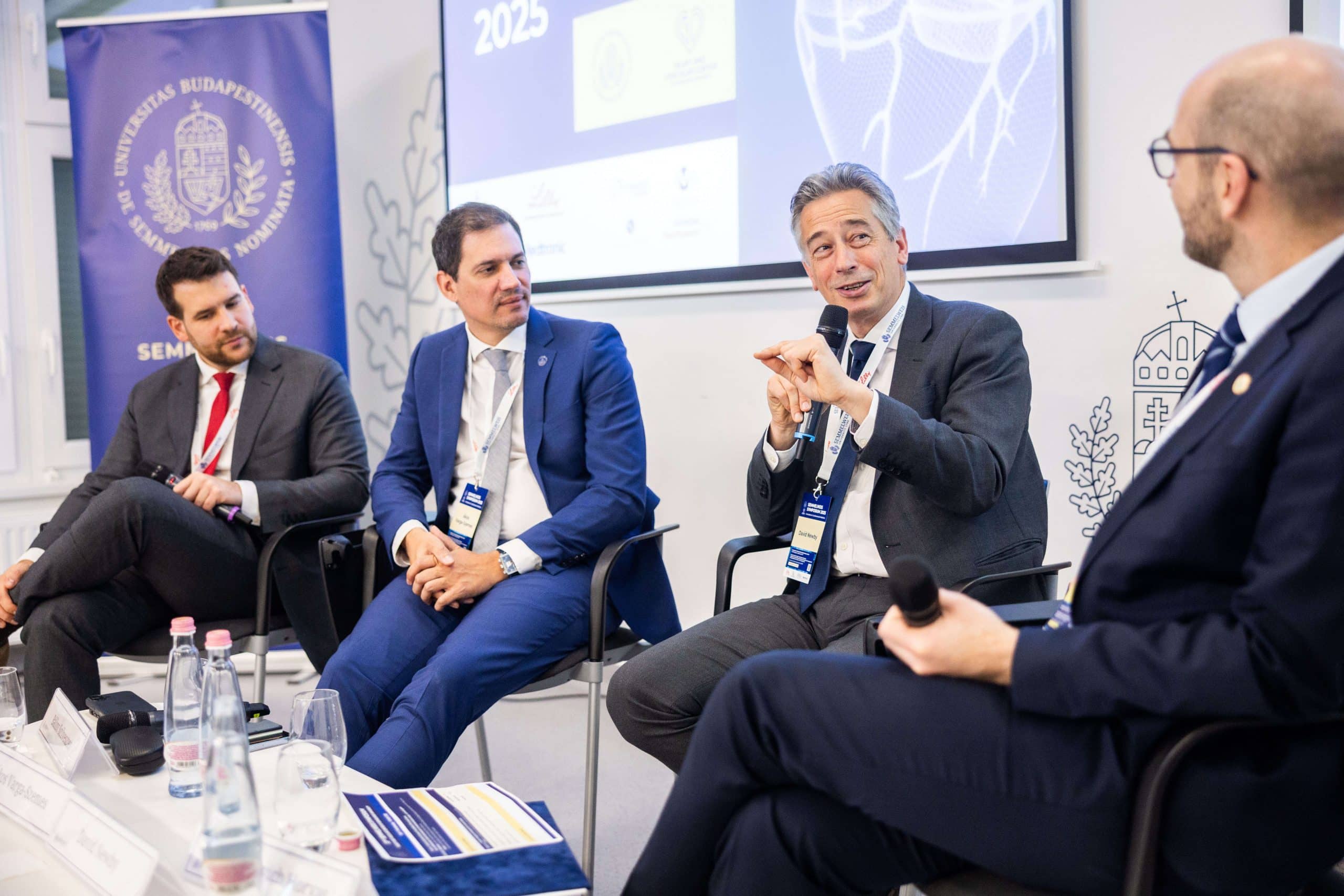 Végül dr. Fabien Thaveau (Strasbourgi Egyetemi Kórház – a robotasszisztált érsebészet francia úttörője) a robotsebészet gyakorlati oldalát ismertette. Nem csodafegyverként beszélt róla, hanem olyan eszközként, amely bizonyos esetekben csökkentheti a szövődmények számát, javíthatja a kezelhetőséget gyengébb általános állapotú betegeknél, és olyan anatómiákban, ahol a nyitott műtét különösen nehéz – például a kismedencében – jobb esélyeket adhat a sebésznek és a betegnek is.