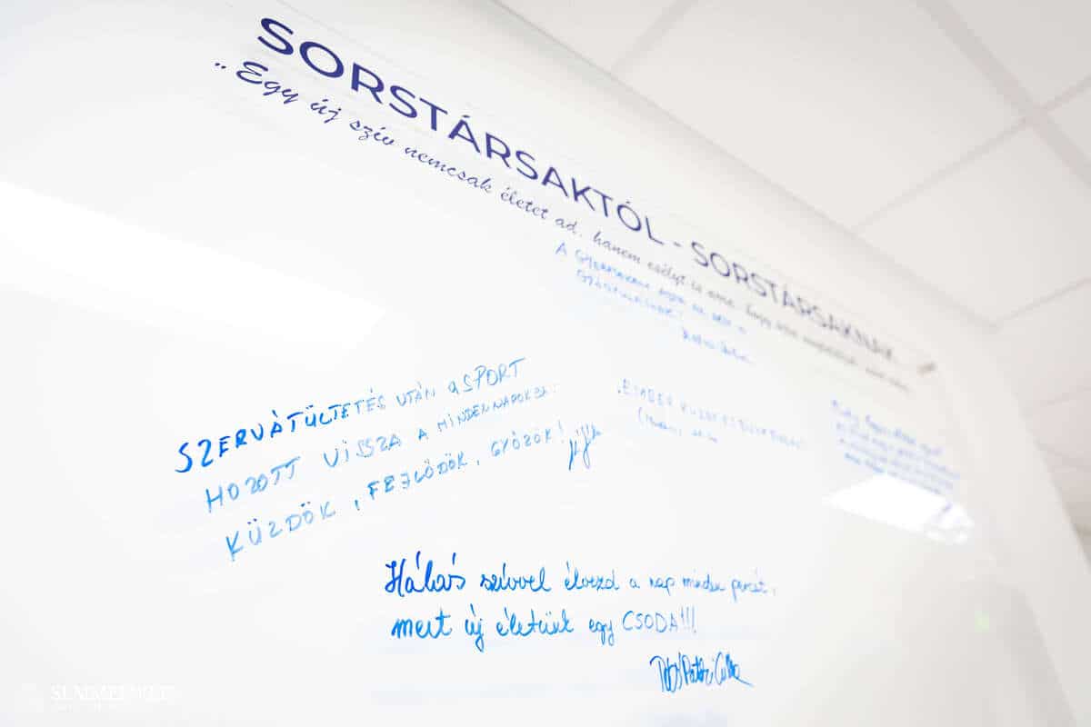 Ma nem csak alkotásokat nézünk, ma embereket ünneplünk. Olyan embereket, akik új szervvel, új ritmussal és sokszor új életcéllal élnek tovább – mondta dr. Ocsovszky Zsófia, a Semmelweis Egyetem Városmajori Szív- és Érgyógyászati Klinikájának szakpszichológusa a megnyitón. Szavai szerint hét éve indították útjára a klinikán az Új Szívben Ép Lélek programot azzal a meggyőződéssel, hogy a test gyógyulása csak akkor lehet teljes, ha a lélek is teret kap a regenerációra. Ennek keretében a betegágy melletti ellátáson túl lelki egészségre fókuszáló betegnapokat szerveztek, betegtájékoztató filmet forgattak, egyéni támogató folyamatokat indítottak, valamint két éve létrehozták a Semmelweis Sorstársi Transzplantációs Mentorprogramot, amely során egykori transzplantáltak immár képzett mentorként segítik sorstársaik felépülését. Szintén két éve hirdették meg „Az én transzplantációm” művészeti alkotópályázatot a transzplantációban érintettek – betegek, hozzátartozók, barátok – számára. „A transzplantáció minden érintett számára kettős. Egyszerre nehézség és újjászületés, veszteség, de benne van a remény is. A gyógyulás útja nemcsak testi, hanem pszichológiai folyamat is. Ezek a művek megmutatják, hogy a testi betegségből való felépülési folyamat nehézségei ellenére új erőforrásokat és megküzdési lehetőségeket is megnyithat” – hangsúlyozta dr. Ocsovszky Zsófia.