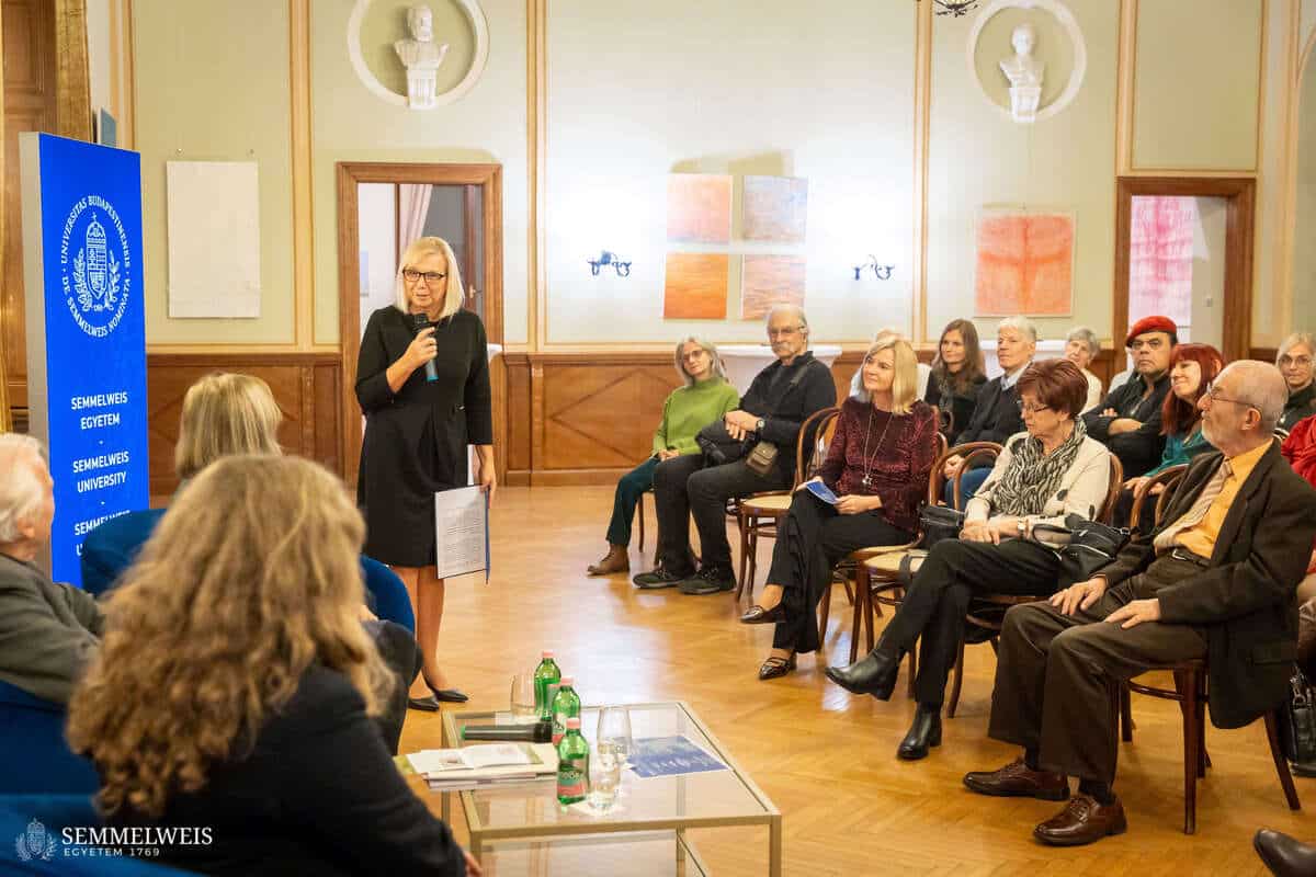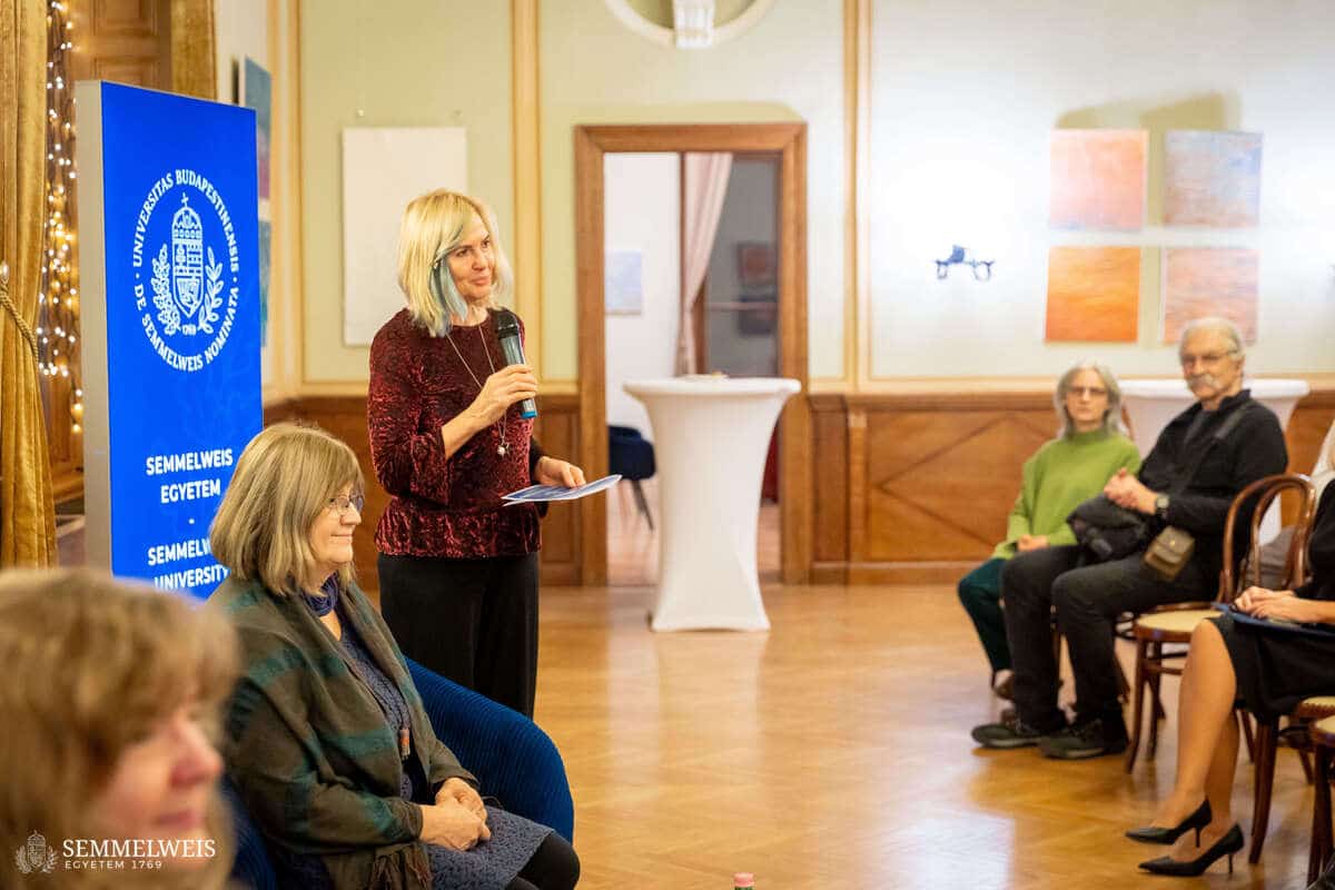 A Semmelweis Egyetemen kiváló és sokoldalú orvosokat, egészségügyi szakembereket szeretnének képezni, és olyan emberré formálni őket, akik nyitottak, szeretik és értik a művészetet is. Az egyetem számos kulturális eseménynek ad otthont, jó példája ennek a Semmelweis Szalon rendezvénysorozat, ahol hónapról hónapra kimagasló kortárs alkotók munkáit ismerhetjük meg – köszöntötte a kiállítás résztvevőit Feketéné dr. Szabó Éva stratégiai és fejlesztési rektorhelyettes.