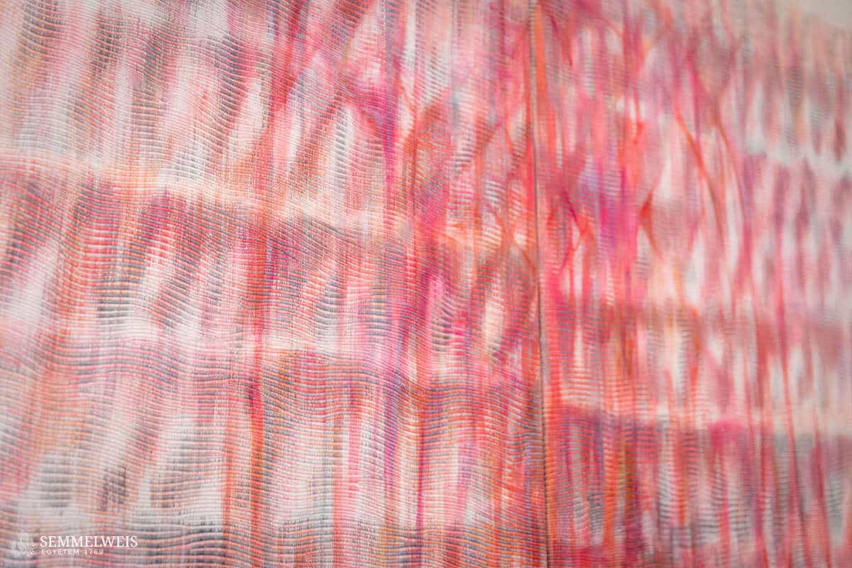 Mint fogalmazott: ahogy a szálak kereszteződnek a textilanyagban, úgy kereszteződtek az utak két mai művészünk, Gulyás Judit, valamint Somodi Ildikó életében; egykor a szövőműhelyben, később a doktori iskola falai között, most pedig itt, a Semmelweis Szalonban. Mindketten a szövés egy-egy különleges műfajában alkotnak. A távol-keleti ikat, a hagyományos textilmintázási technika és a kézi tűzött szőnyegek nem csak egyedi technikai ismereteket, művészi látásmódot, hanem türelmet, alázatot, elkötelezettséget is megkövetelnek az alkotótól.