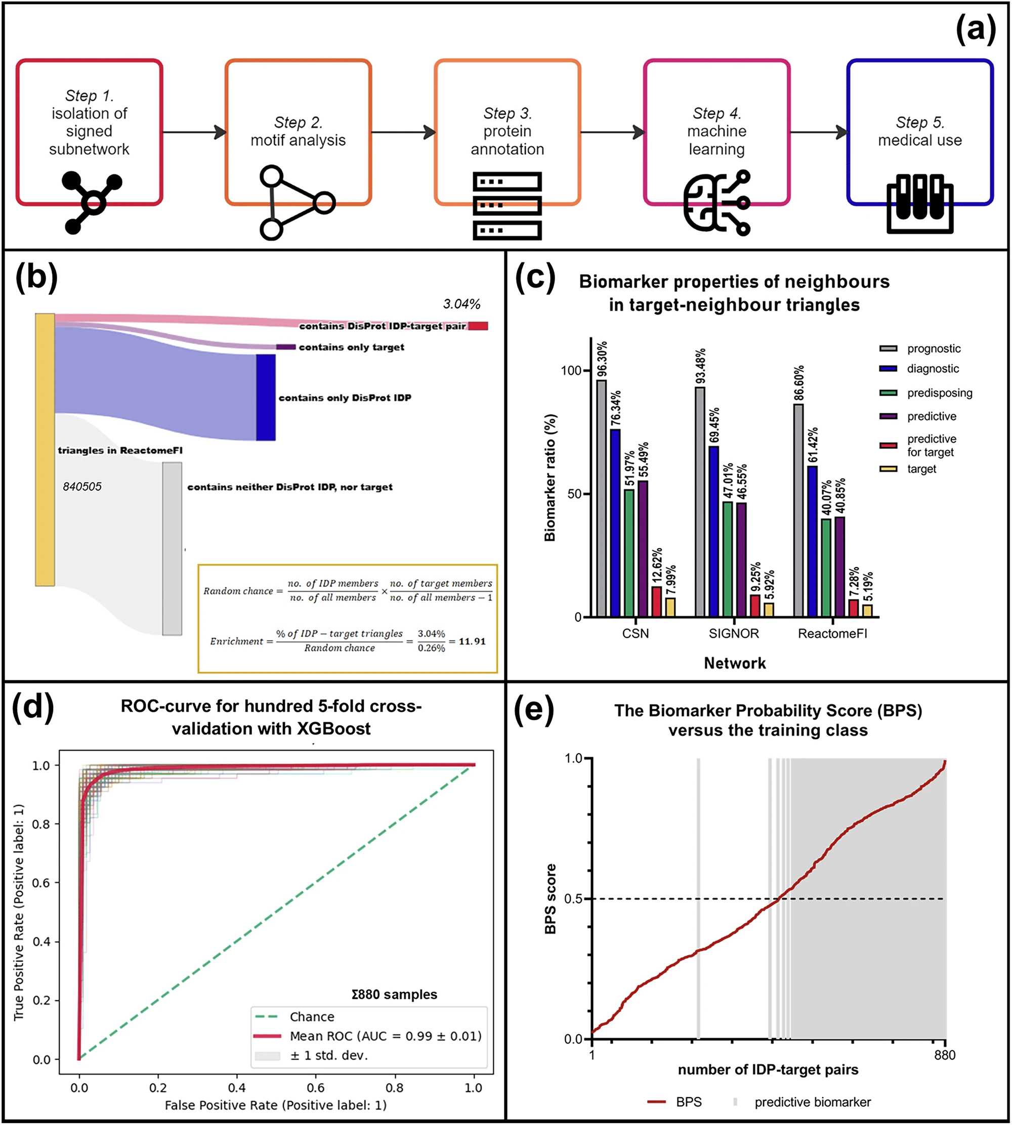 A tanulmány a MarkerPredict nevű új biomarker-valószínűsítő módszert mutatja be, amely azért készült, hogy segítse az onkológusokat előre jelezni, hogy kinél lehet hatékony egy célzott daganatellenes terápia. A módszer a sejtekben működő jelátviteli hálózatok, azaz a fehérjék közti szabályozó kapcsolatok elemzését (hálózat topológia), és a fehérjék szerkezeti rendezetlenségi adatait kombinálja gépi tanulással. A modell 880 ismert gyógyszercélpont–fehérje-pároson tanult, és az algoritmus 70–96 százalék közötti pontossággal tudta megkülönböztetni a valós biomarkereket a nem-biomarkerektől. A módszer pontosságát tovább fokozandó, a szerzők 32 modell kombinálásával kialakították a Biomarker Előrejelző Pontszámot a legígéretesebb jelöltek megtalálására. Ezután 3670 páron alkalmazva a módszert, a MarkerPredict több mint 2084 potenciális új gyógyszerhatást előrejelző biomarkert azonosított. Ezek közül 426 olyan volt, amit az összes modell konzisztensen jónak jelölt. Közülük az egyik legígéretesebb, részletesen bemutatott jelölt az ERK1 nevű fehérje, amelyet a modell az BCL2–gátló terápiák biomarkerének javasol magas pontszámmal.