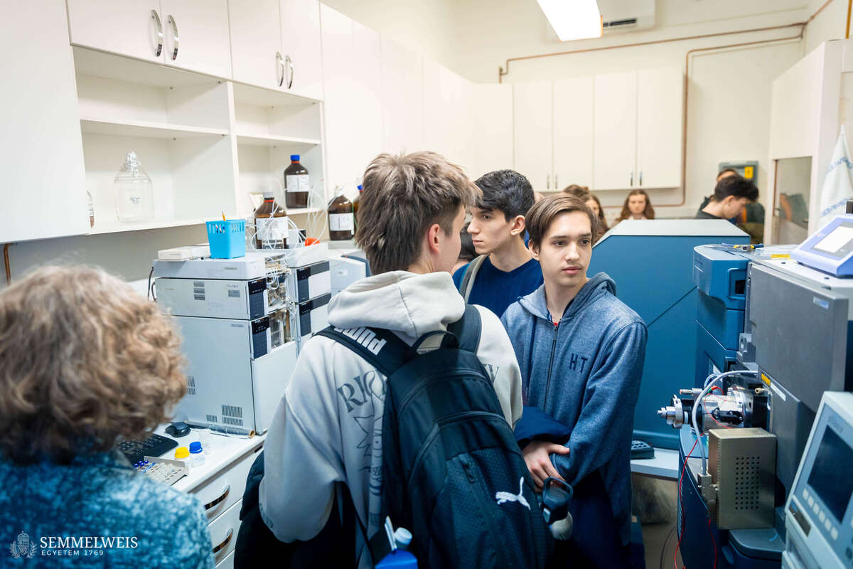 A Gyógyszerésztudományi Kar (GYTK) Hőgyes Endre utcai épületében a leglátványosabbak a laborgyakorlatok helyszínei voltak, ahol gyakorlatvezető tanárok adtak bepillantást az összetett munkafolyamatokba. Dr. Mazákné Kraszni Márta egyetemi docens a Gyógyszerészi Kémiai Intézetben egyebek mellett a műszeres hallgatói labor műszereit mutatta be. A szomszédos épületben a gyógynövény- és drogismeret tárgy oktatója hívta fel a figyelmet a tanulmányokban a növényismeret fontosságára: a gyógyszertárakban előforduló hatóanyagoknak mintegy fele a növényekből származik, és a másik felét teszik ki a szintetikus vegyületek. A látogatás látványos részei közé tartozott a tangyógyszertár bemutatása. Az üzemi tanlaboratóriumban kiemelték, a mai gyógyászatban már szerepet kap a személyre szabott gyógyszerelés, és bemutattak egy erre alkalmas 3D gyógyszernyomtatót is, de láthattak vattacukorszerű nanoszálakat előállító berendezést, és a hagyományos tabletta préselését is bemutatták a felvételire készülő középiskolásoknak.