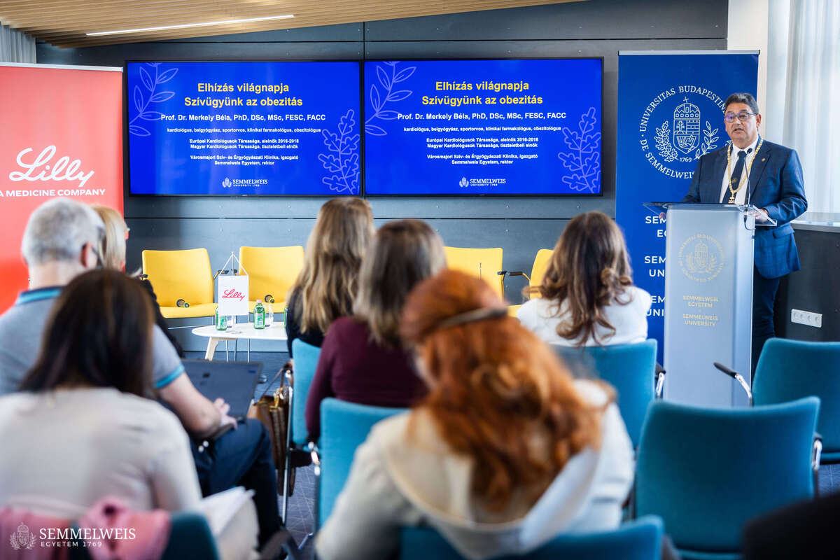 „A Semmelweis Egyetem rektoraként és a Városmajori Szív- és Érgyógyászati Klinika igazgatójaként fontosnak tartom, hogy nagyon hatékony terápiáink legyenek a legkülönbözőbb gyakori szív- és érrendszeri betegségek esetében, de még jobban örülnék akkor, ha a prevenció sokkal nagyobb teret kaphatna és ez társadalmi szinten is megjelenne” – fogalmazott dr. Merkely Béla az elhízás világnapja alkalmából a Városmajori Szív- és Érgyógyászati Klinikán a Lilly Hungária Kft.-vel közös eseményen.