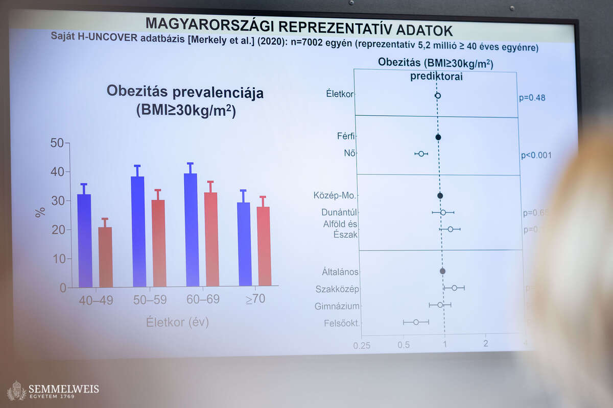 A túlsúly ma már nagyon komoly népegészségügyi probléma, és különösen elszomorító az ezzel kapcsolatos tendencia: a nyolcvanas évek óta ugyanis megduplázódott az érintettek száma – derült ki a rektor előadásából. Az Európai Kardiológus Társaság adatai szerint a 30-as testtömegindexet (BMI) meghaladók arányában Magyarország dobogós helyen áll, Máltával és Horvátországgal együtt. Az elhízottak jóval nagyobb eséllyel szenvednek el súlyos civilizációs betegséget és rövidebb lesz az egészségben eltöltött életéveik száma is.