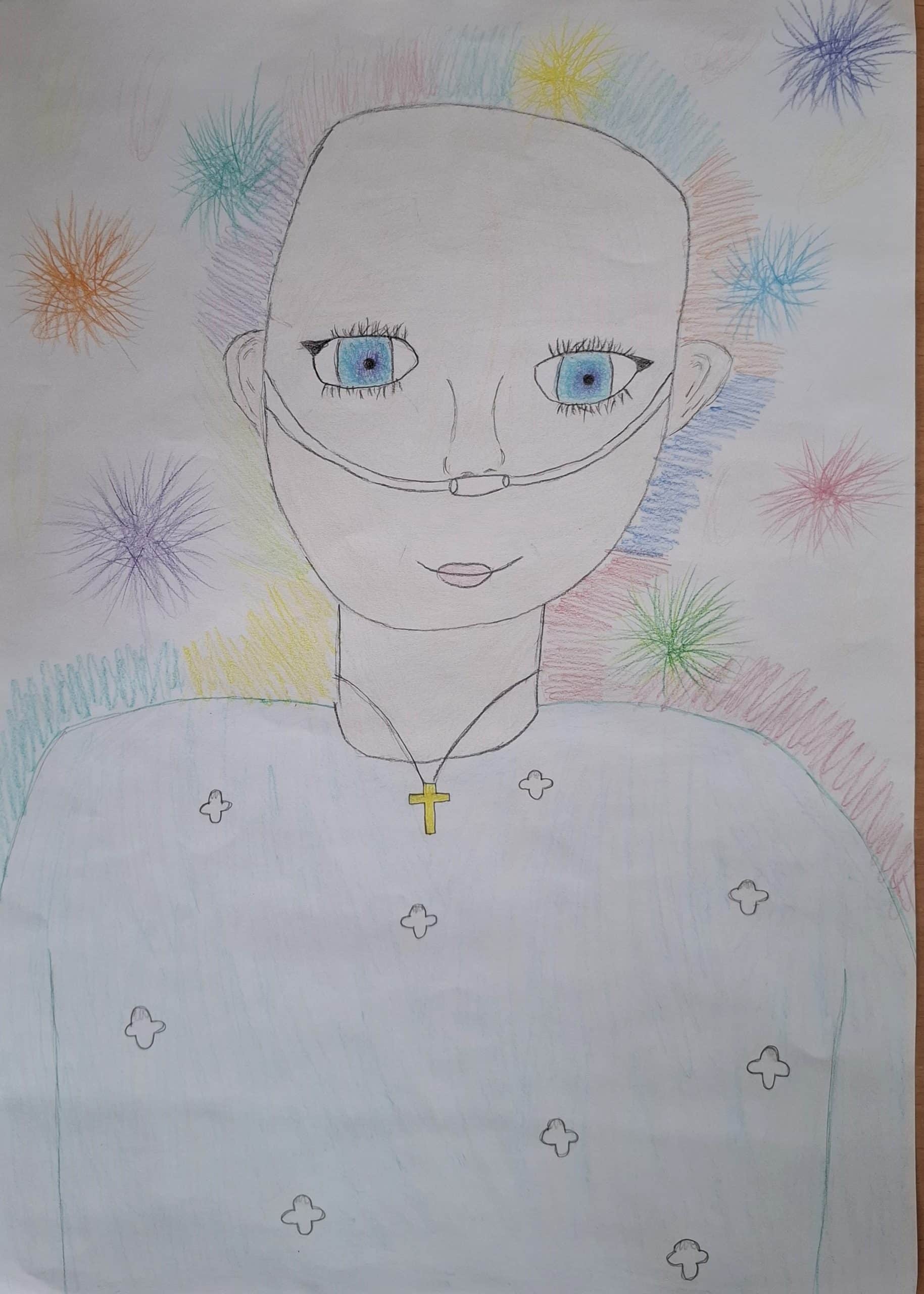 1. hely: Portrusching Alexandra – Egy nehéz napom a kórházban című rajzával