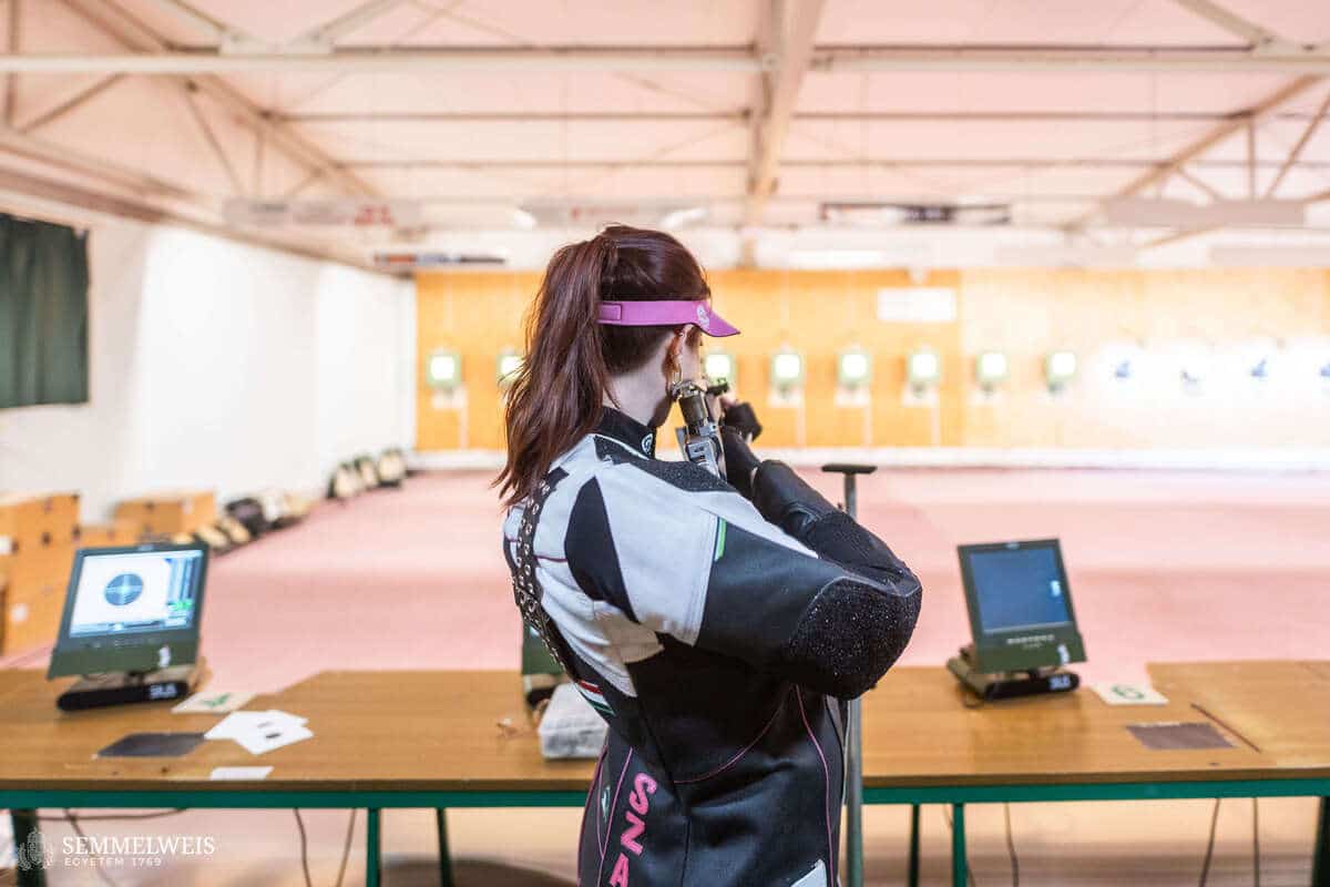 A kézügyességét a laborban és a lőpályán egyaránt kamatoztatni tudja. „A laborban egyik gyakran végzett kísérletünkben egy 96-lyukú lemezbe kell különböző kezelőszereket pipettázni, ahol ha eltévesztem a számolást, lehet, hogy az egészet meg kell ismételnem. A lőtér emellett megtanít a fókuszálni is, hiszen ott egy-egy versenyen akár másfél óráig kell koncentrálni, nem szabad elkalandoznia a figyelmemnek – ez pedig tanulásnál is nagyon hasznos” – jegyezte meg. Elmondása szerint alapvetően kétféle sportlövő van: aki tudatosan, fejben mindent előre eltervezve lő, és aki ösztönből. „Én inkább az első kategóriába tartozom, igyekszem végig ott lenni fejben. Erre a tudatosságra szükség is van, hiszen a sportlövészetben a fizikainál is nagyobb a mentális állóképesség jelentősége. Előfordulhat, hogy ezen áll vagy bukik a végeredmény: ha öt lövéssel a vége előtt jól állsz, nagyon sokat számít, hogyan menedzseled le az utolsó lövéseket, tudod-e kezelni a rád nehezedő nyomást. Én ebben sokáig kevésbé voltam jó, de sokat javultam” – magyarázta. Mai napig büszkén gondol vissza első versenyére: 16 évesen, azaz még az ifjúsági korosztályban lett az országos bajnokság negyedik helyezettje kisöbű sportpuskával, 60 méteres távolságból, fekvő testhelyzetből lőve; ugyanebben a versenyszámban pedig nemsokára a junior országos bajnokságon bronzérmet szerzett. „Az egyetemi tanulmányaim mellett nem tudtam annyit edzeni, amennyi szerettem volna, nehéz volt tartani a ritmust a heti két-három gyakorlással, plusz a hétvégi versenyekkel, ezért az eredményeim inkább csak stagnáltak. A PhD-tanulmányaim mellett azonban jobban be tudtam osztani az időmet és végre ismét többet tudtam kijárni a lőpályára. Ez az eredményeimen is meglátszott, több országos bajnoki címet is sikerült szereznem. Az egyik legbüszkébb a tavalyi kisöbű standard puska 3×10 összetettben elért bajnoki címemre vagyok, valamint arra, hogy tavaly nyílt irányzékú légpuskával úgy lettünk csapatban bajnokok, hogy a saját, 2024-es országos csúcsunkat döntöttük meg” – emelte ki.