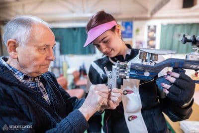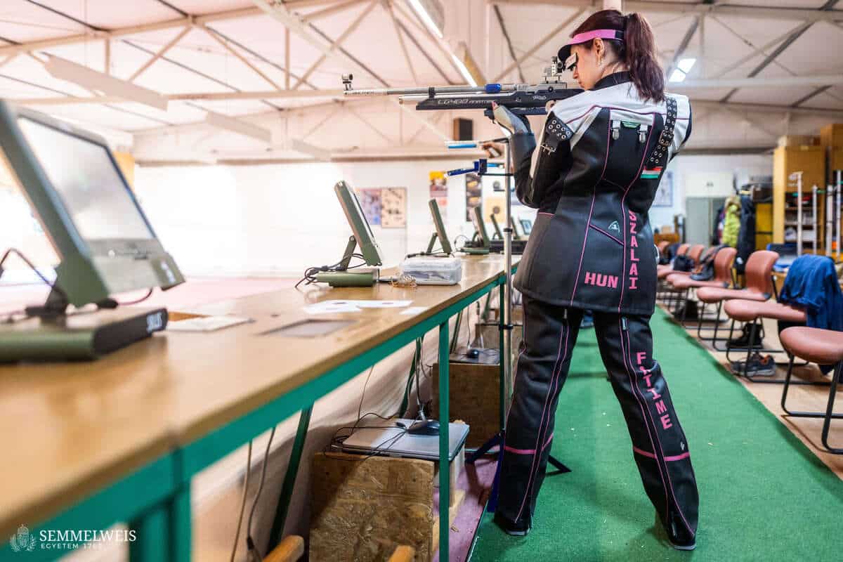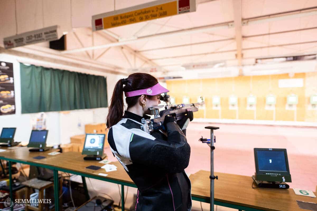 A kézügyességét a laborban és a lőpályán egyaránt kamatoztatni tudja. „A laborban egyik gyakran végzett kísérletünkben egy 96-lyukú lemezbe kell különböző kezelőszereket pipettázni, ahol ha eltévesztem a számolást, lehet, hogy az egészet meg kell ismételnem. A lőtér emellett megtanít a fókuszálni is, hiszen ott egy-egy versenyen akár másfél óráig kell koncentrálni, nem szabad elkalandoznia a figyelmemnek – ez pedig tanulásnál is nagyon hasznos” – jegyezte meg. Elmondása szerint alapvetően kétféle sportlövő van: aki tudatosan, fejben mindent előre eltervezve lő, és aki ösztönből. „Én inkább az első kategóriába tartozom, igyekszem végig ott lenni fejben. Erre a tudatosságra szükség is van, hiszen a sportlövészetben a fizikainál is nagyobb a mentális állóképesség jelentősége. Előfordulhat, hogy ezen áll vagy bukik a végeredmény: ha öt lövéssel a vége előtt jól állsz, nagyon sokat számít, hogyan menedzseled le az utolsó lövéseket, tudod-e kezelni a rád nehezedő nyomást. Én ebben sokáig kevésbé voltam jó, de sokat javultam” – magyarázta. Mai napig büszkén gondol vissza első versenyére: 16 évesen, azaz még az ifjúsági korosztályban lett az országos bajnokság negyedik helyezettje kisöbű sportpuskával, 60 méteres távolságból, fekvő testhelyzetből lőve; ugyanebben a versenyszámban pedig nemsokára a junior országos bajnokságon bronzérmet szerzett. „Az egyetemi tanulmányaim mellett nem tudtam annyit edzeni, amennyi szerettem volna, nehéz volt tartani a ritmust a heti két-három gyakorlással, plusz a hétvégi versenyekkel, ezért az eredményeim inkább csak stagnáltak. A PhD-tanulmányaim mellett azonban jobban be tudtam osztani az időmet és végre ismét többet tudtam kijárni a lőpályára. Ez az eredményeimen is meglátszott, több országos bajnoki címet is sikerült szereznem. Az egyik legbüszkébb a tavalyi kisöbű standard puska 3×10 összetettben elért bajnoki címemre vagyok, valamint arra, hogy tavaly nyílt irányzékú légpuskával úgy lettünk csapatban bajnokok, hogy a saját, 2024-es országos csúcsunkat döntöttük meg” – emelte ki.