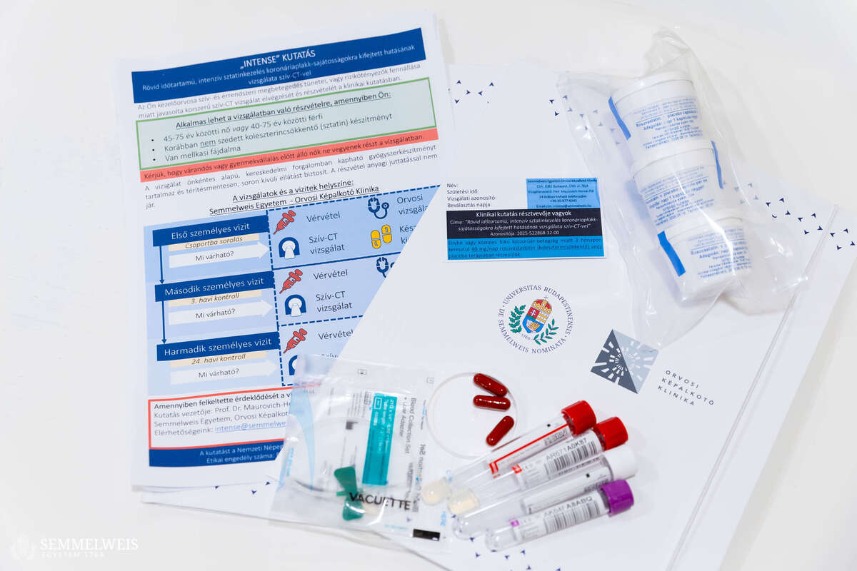 „A vizsgálat mögött több mint egy évnyi kitartó előkészítő munka áll, amelynek eredményeként megszületett az európai szintű etikai engedély. A kutatás a Semmelweis Egyetem vezető szakembereinek kezdeményezésére indult el, az OTKA pályázat támogatásával, és olyan rangos hazai és nemzetközi partnerek együttműködésében valósul meg, mint a HeartFlow Ltd. (USA) és a Charité University (Berlin, Németország). A vizsgálati gyógyszer egy széles körben használt koleszterincsökkentő tabletta, amelyet az Egyetemi Gyógyszertár Gyógyszerügyi Szervezési Intézet csomagol újra a vizsgálatban résztvevő páciensek számára, akiket az egyetem több klinikájáról toborozzuk – köztük a Városmajori Szív- és Érgyógyászati Klinikáról, valamint a Belgyógyászati és Onkológiai Klinikáról, de nagy örömünkre bekapcsolódott már a vizsgálatba több vidéki kórház is” – mondta el dr. Maurovich Horvat Pál, a Semmelweis Egyetem Orvosi Képalkotó Klinika igazgatója, a klinikai vizsgálat vezetője.