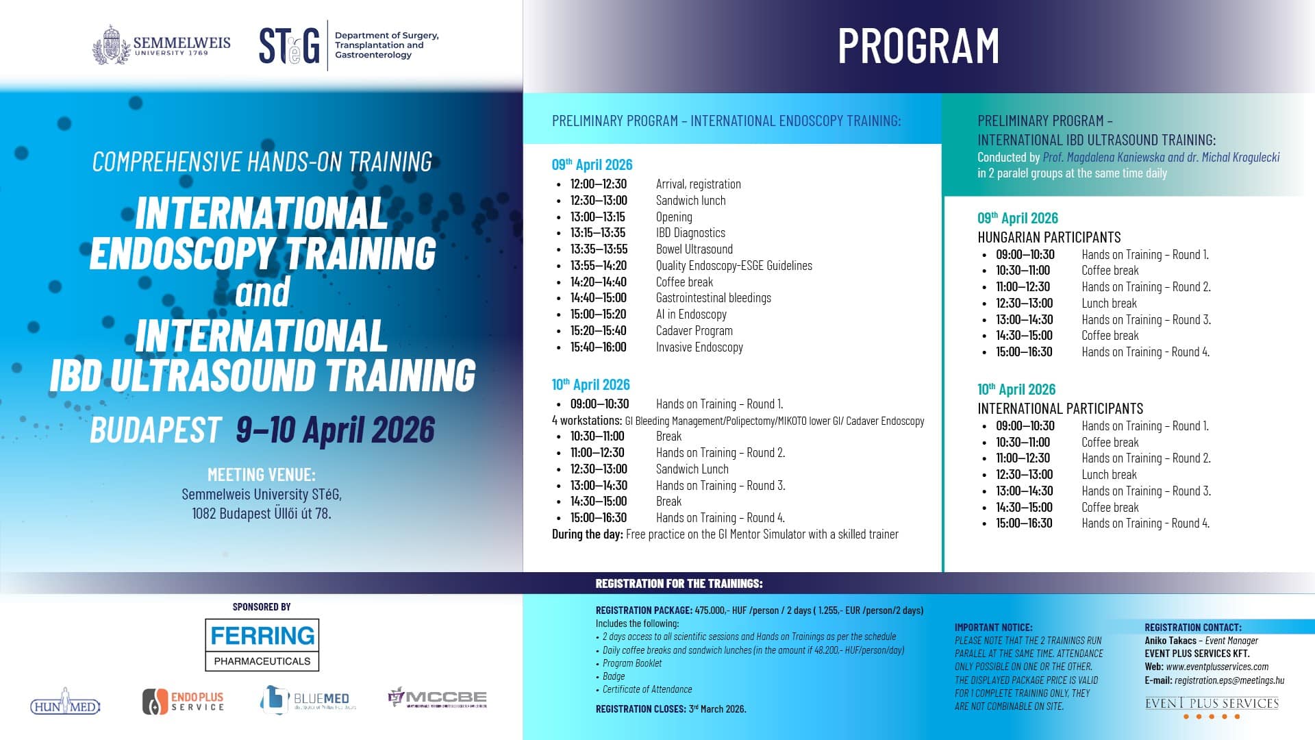 Sebészeti, Transzplantációs és Gasztroenterológiai Klinika", "startDate":"2026-04-10", "endDate":"2026-04-11", "startTime":"09:00", "endTime":"17:00", "location":"1082 Budapest,, Üllői út 78.", "options":["Apple","Google","iCal","Microsoft365", "MicrosoftTeams", "Outlook.com"], "timeZone":"Europe/Budapest", "iCalFileName":"Endoszkópos tréning és IBD ultrahang kurzus II/II.", "label":"Naptárba"}