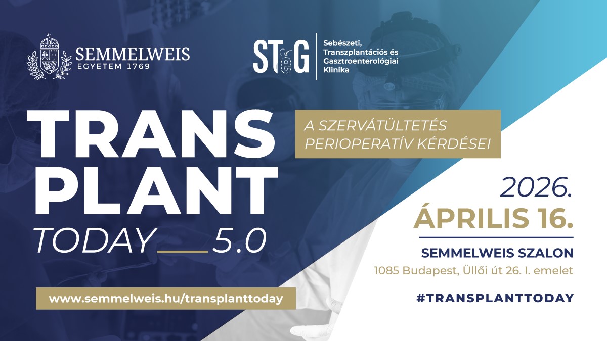Semmelweis Szalon, Semmelweis Egyetem", "startDate":"2026-04-16", "endDate":"2026-04-16", "startTime":"09:00", "endTime":"16:00", "location":"1085 Budapest,, Üllői út 26. I. emelet", "options":["Apple","Google","iCal","Microsoft365", "MicrosoftTeams", "Outlook.com"], "timeZone":"Europe/Budapest", "iCalFileName":"Transplant Today 5.0", "label":"Naptárba"}