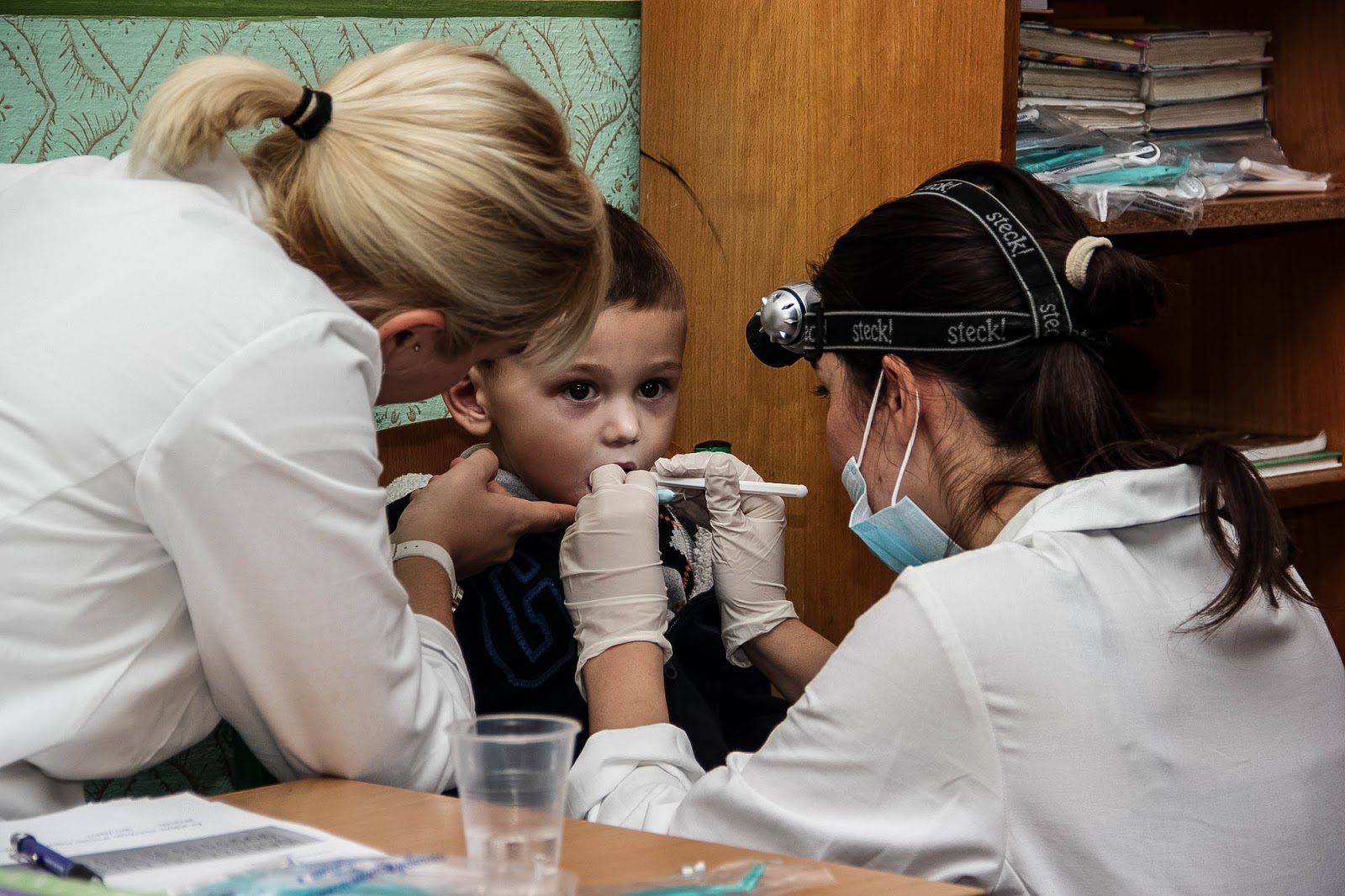 A határátlépés után Ungvárra indulunk, ahol a helyi egyetemisták már várnak bennünket. Egy rövid megnyitó után kezdetét is veszi az, ami miatt tulajdonképpen idejöttünk. Vagyis kezdetét venné, ha látnánk, hogy mit hová és hogyan is kell. Kicsit kaotikus minden, a betegek pedig már kint várakoznak. Aztán egyszer csak a szervezők kezükbe veszik az irányítást, és hihetetlenül rövid időn belül a terem átalakul egy logikusan felépített, különböző állomásokból álló mobil orvosi rendelővé. Olyan finoman kerül minden a helyére, mint mikor kirakózik az ember, és a sok kis darabból egyszer csak összeáll a teljes kép. Ezen kép szerint én épp egy betegre várok, akinek az anamnézisét fogjuk felvenni spanyol hallgatótársammal. Az általános állapotot felmérő kérdések mellett már ezen a napon is nyilvánvalóvá válik számunkra, hogy mennyivel rosszabb körülmények vannak a helyi egészségügyben, illetve hogy mennyivel korlátozottabbak az itt élők lehetőségei, mint akár nálunk odahaza. Többek között ezért is nagyon fontos az, hogy mi most itt lehetünk. Úgy érzem ez még inkább megadja a kellő motivációt az elkövetkező napokra.