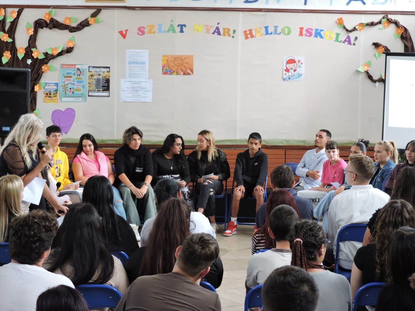 Az öngyilkosság vezető halálok a fiatalabb generáció körében. 2025. szeptember 24-én az Öngyilkosság elleni küzdelem hónapja keretében „kerekasztal-beszélgetésre” került sor iskolánkban. Az öngyilkosság elleni harcban kulcsfontosságú a nyílt kommunikáció, a közösség megtartó ereje a kapcsolatok ápolása és az odafigyelés egymásra. A rendezvény fő célja az volt, hogy felhívjuk a figyelmet arra, hogy mindig van elérhető segítség. A faliújságon rövid „útmutatót”, tanácsokat is elhelyeztünk arra az esetre, ha valakinek baj esetén szüksége lenne konkrét segítségre.