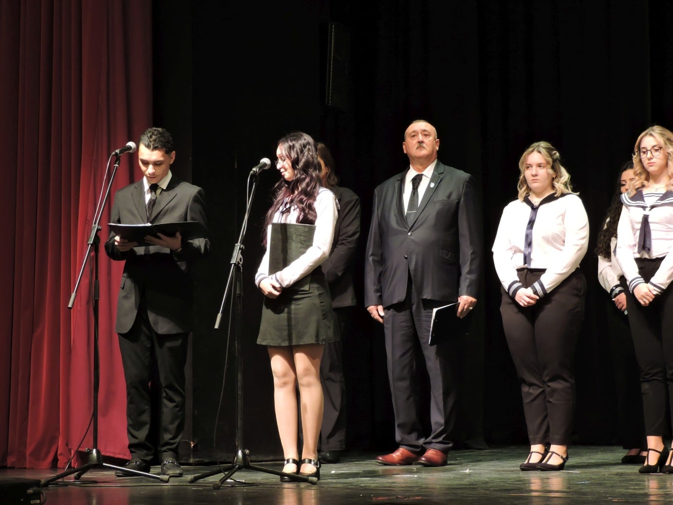 Végül a színpadon közösen álltak a közönség elé a diákok, hogy fogadják a tapsot.