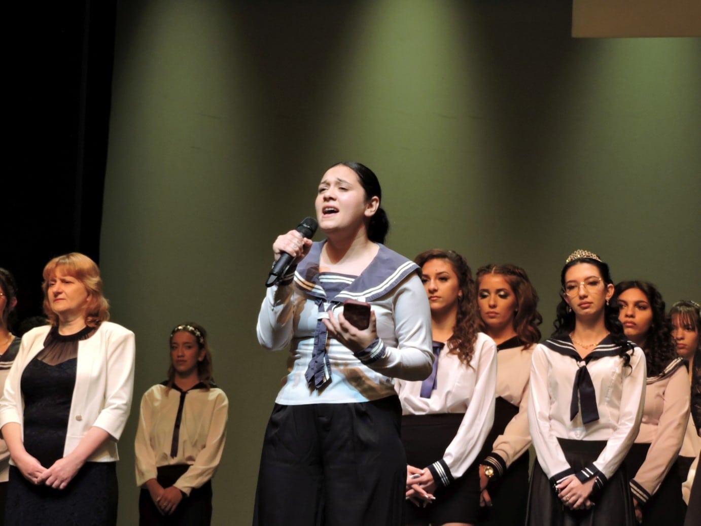Végül a színpadon közösen álltak a közönség elé a diákok, hogy fogadják a tapsot.