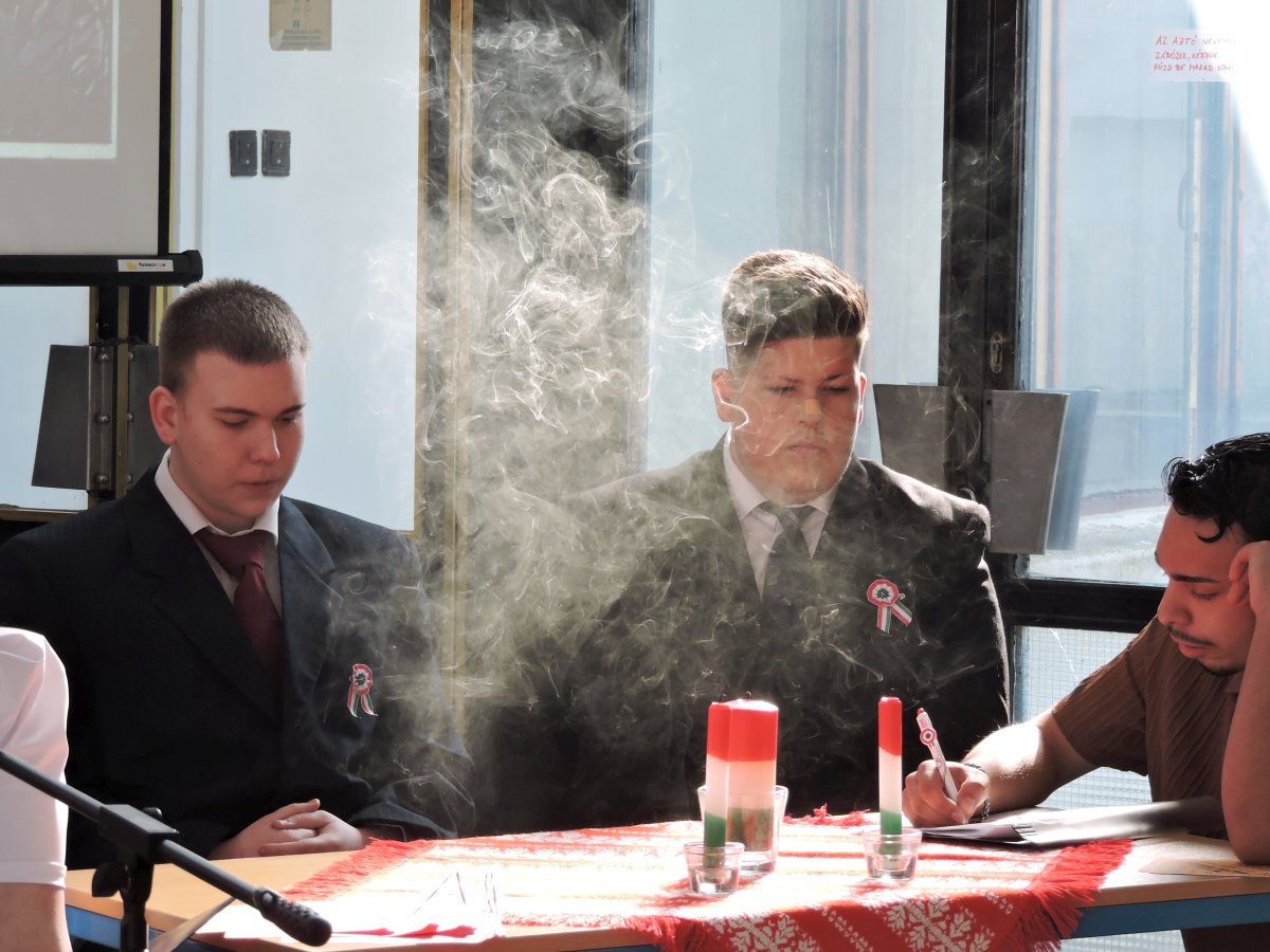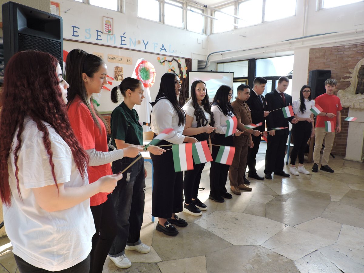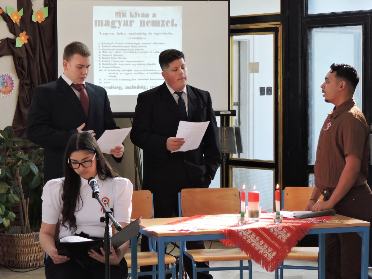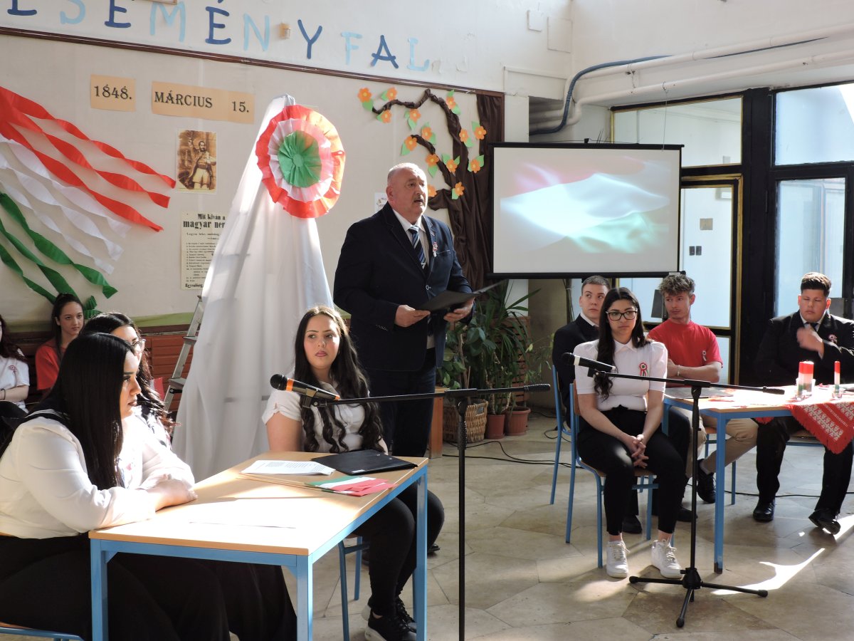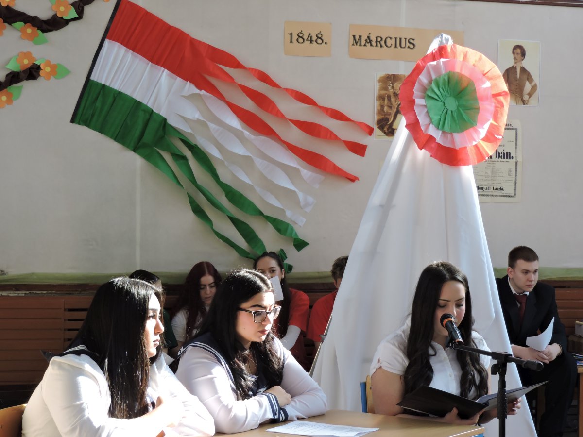 A színvonalas ünnepi műsort Németh Georgina tanárnő és a 11.A osztály tanulói adták elő, majd Radics Sándor igazgató úr osztotta meg gondolatait a márciusi forradalom jelentőségéről.