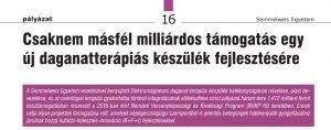 - Csaknem másfél milliárd forintos támogatás egy új daganatterápiás készülék fejlesztésére
