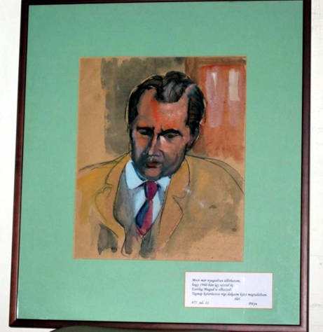 Képszöveg: „Most már nyugodtan állíthatom, hogy 1960-ban így néztél ki. Esetleg Magad is elhiszed. Tegnap kotorászva régi dolgaim közt, megtaláltam. Ölel, Pityu. 1977. júl. 1.” Eredetije jelenleg az intézet konferenciatermében látható