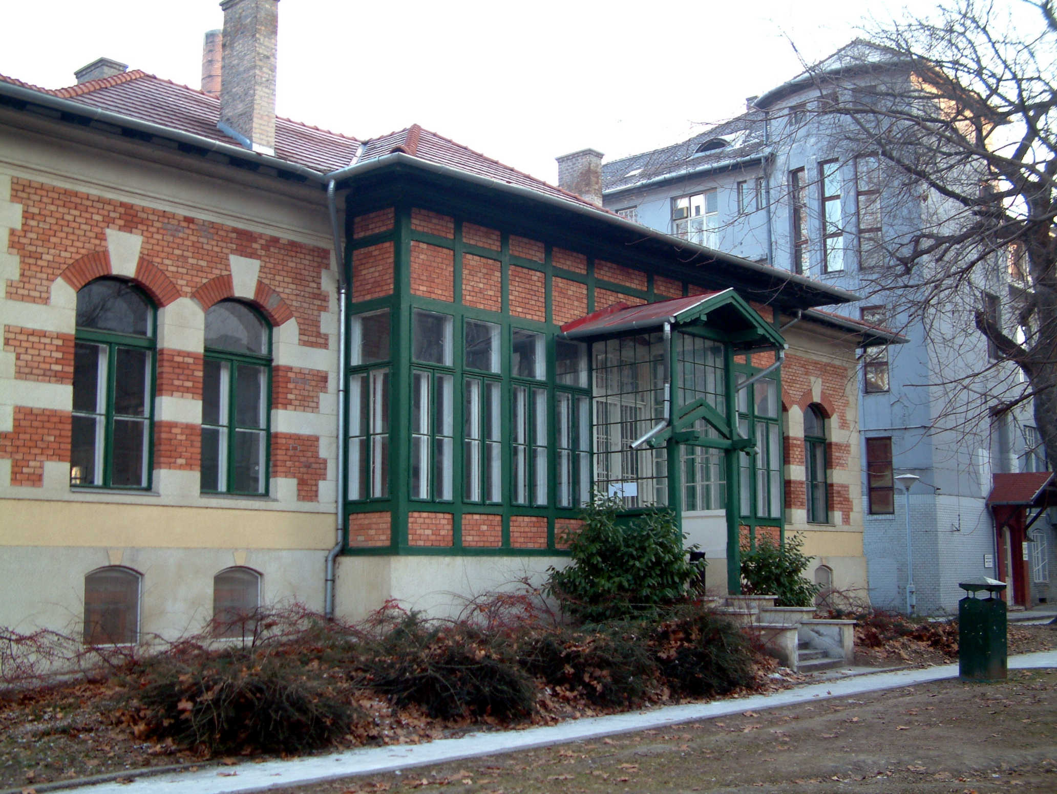 Az 1959-ben alapított Külső Műtéti Klinikák Kísérleti Kutató Laboratóriumának háborús (1945 és 1956) sebeket viselő főépülete a Külső Klinikai Telepen