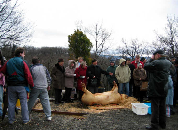 Részlet az ünnepi disznótoros parti kora reggeli előkészületeiből