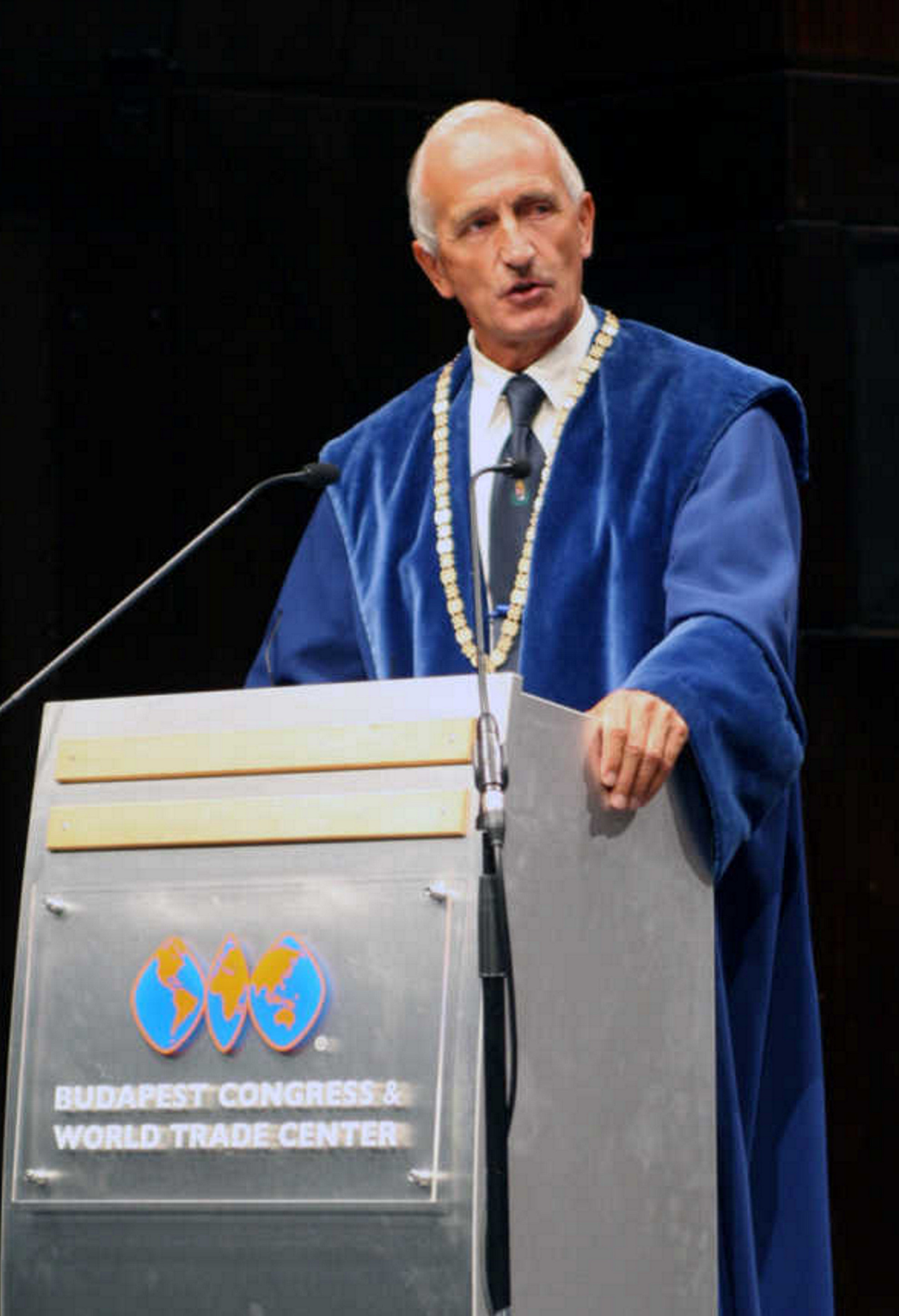 Kollai Márk, általános rektorhelyettes tanévnyitó beszédet tart a Budapesti Kongresszusi Központban (2007)