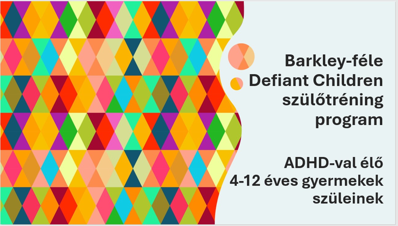 A program célja, hogy az ADHD-val élő, gyakran ellenszegülő, dacos gyermekek szülei hatékony nevelési stratégiákat sajátítsanak el. A korszerű tudományos evidenciákon alapuló tréning során a résztvevők megismerhetik a kívánt viselkedések következetes megerősítésének pszichológiai alapjait. Különös hangsúly kerül a világos szabályok és elvárások kialakítására. A programban központi szerepet kap a harmonikus szülő-gyermek kapcsolat támogatása, a konfliktusok megelőzése és a generációk közötti együttműködés megszilárdítása. A csoportos forma lehetőséget ad a tapasztalatcserére és kölcsönös, támogató közeget nyújt (10 alkalom).