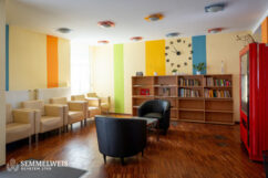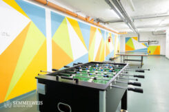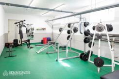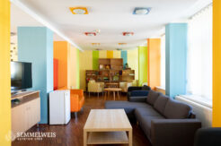 A földszinti mosókonyha nagy teljesítményű mosógépekkel és szárítógéppel felszerelt. Az épülethez parkosított kert, sportpálya is tartozik.