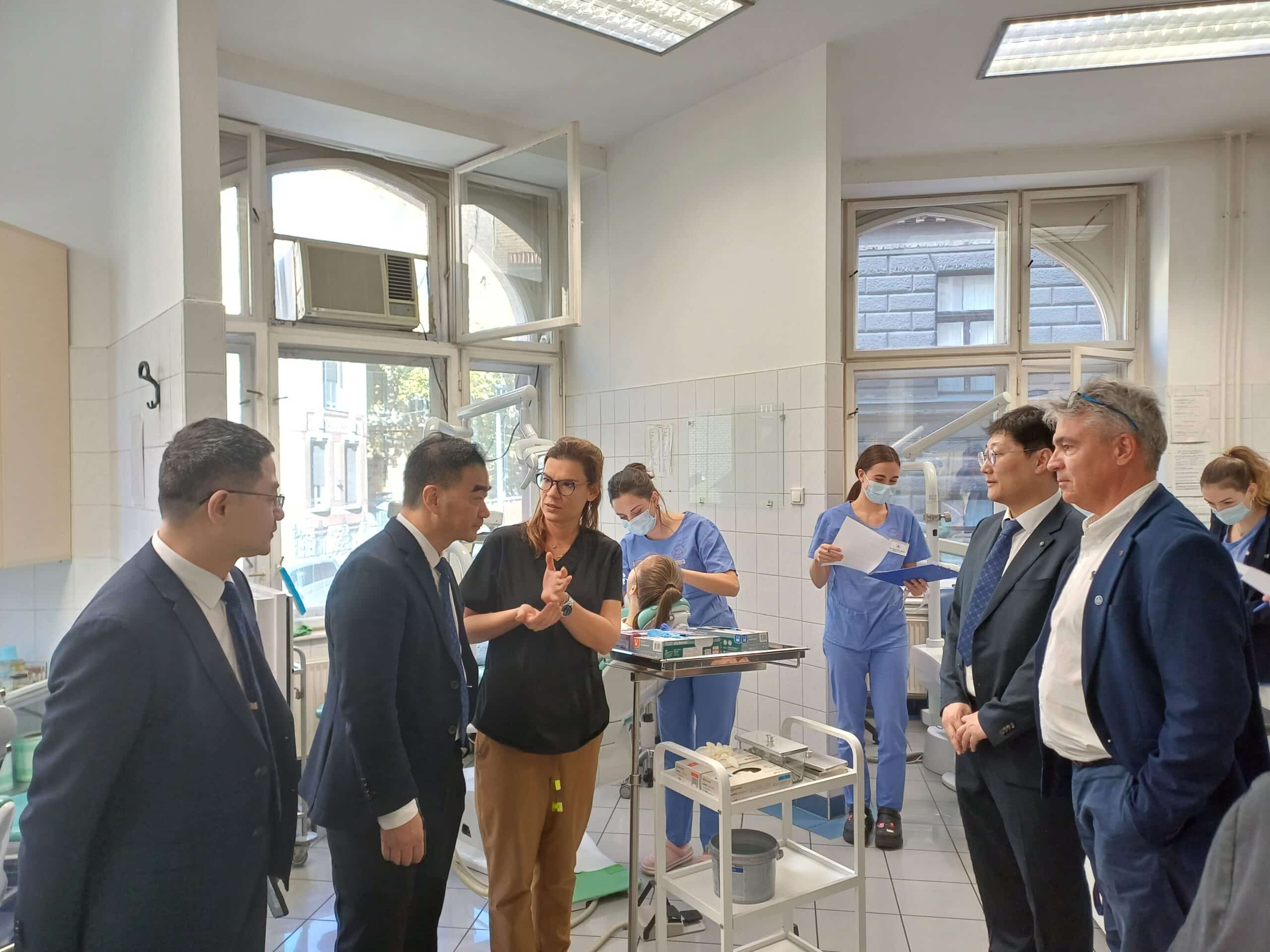 Following the signing ceremony, the delegation continued its visit at the Faculty of Dentistry, where Dr. Anna Júlia Dézsi guided them through the facilities. They gained insight into the operation of the Department of Propedeutics and visited the teaching clinics, lecture halls, and the newly established digital laboratories.