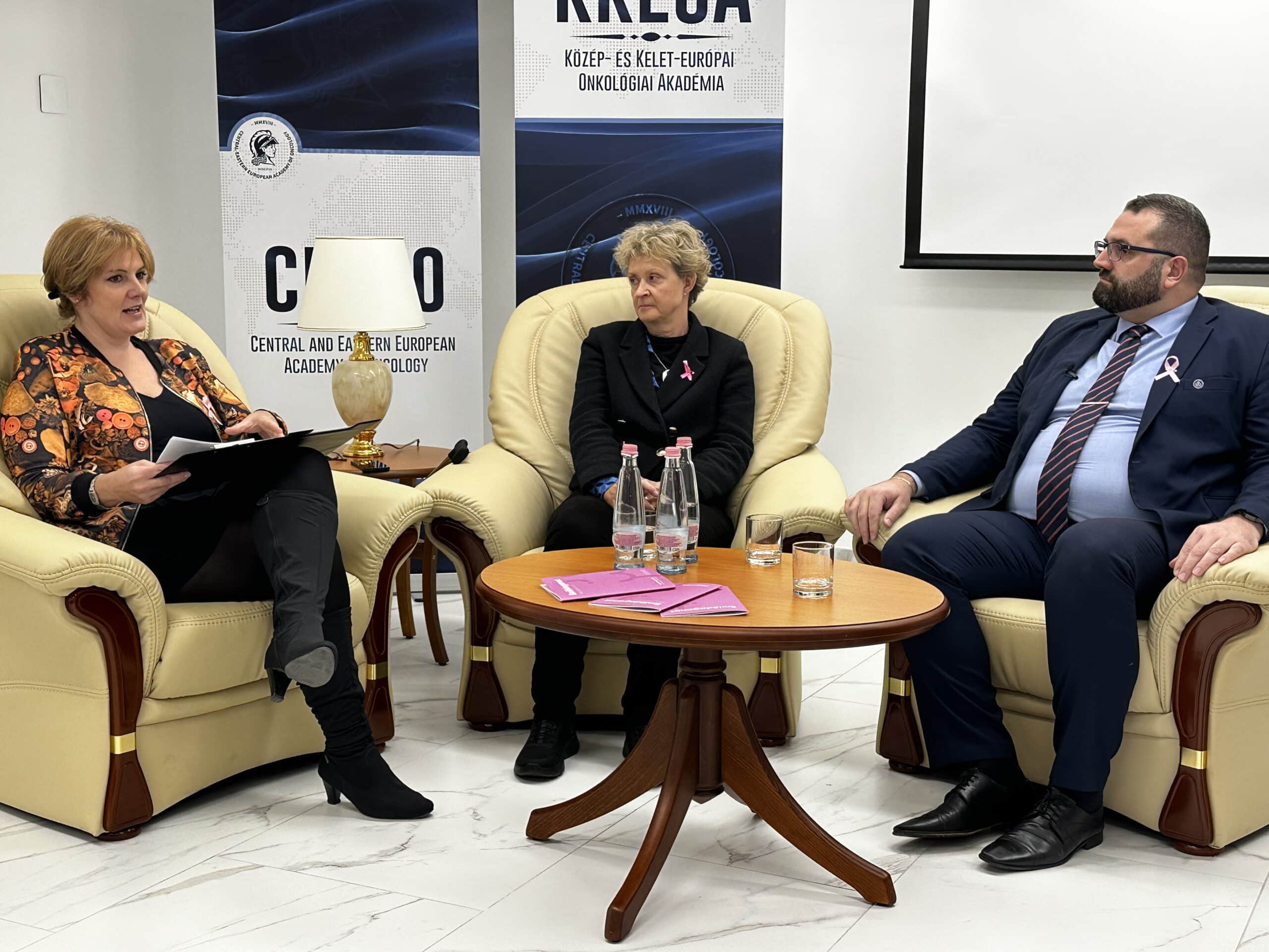 A program középső blokkját egy kerekasztal-beszélgetés képezte, amelyben Dr. Kalóné Tóth Krisztina (az Egészség Hídja Összefogás és az Egészségért a Mellrák Ellen Egyesület alelnöke) és Dr. Balázs Máté Ádám (a Gyógyszer- és Betegbiztonsági Kutatócsoport titkára) vettek részt. A beszélgetés során szó esett a betegség megelőzéséről, szűréséről, a korai diagnózis jelentőségéről, a terápiás lehetőségekről, valamint a betegek lelki és társas támogatásának fontosságáról, illetve a betegszervezetk kiemelt szerepéről beszéltek a panelbeszélgetés részt vevő szakemberek.