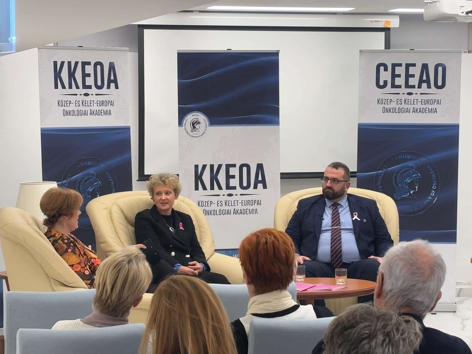 A program középső blokkját egy kerekasztal-beszélgetés képezte, amelyben Dr. Kalóné Tóth Krisztina (az Egészség Hídja Összefogás és az Egészségért a Mellrák Ellen Egyesület alelnöke) és Dr. Balázs Máté Ádám (a Gyógyszer- és Betegbiztonsági Kutatócsoport titkára) vettek részt. A beszélgetés során szó esett a betegség megelőzéséről, szűréséről, a korai diagnózis jelentőségéről, a terápiás lehetőségekről, valamint a betegek lelki és társas támogatásának fontosságáról, illetve a betegszervezetk kiemelt szerepéről beszéltek a panelbeszélgetés részt vevő szakemberek.