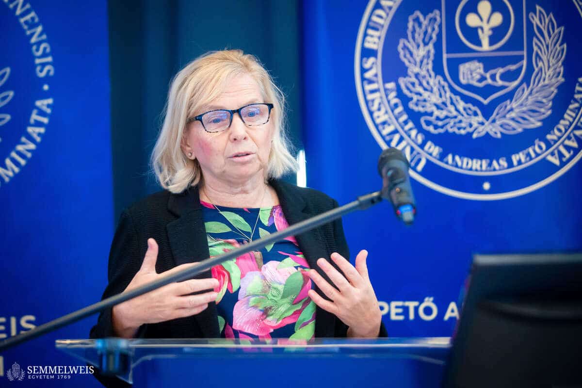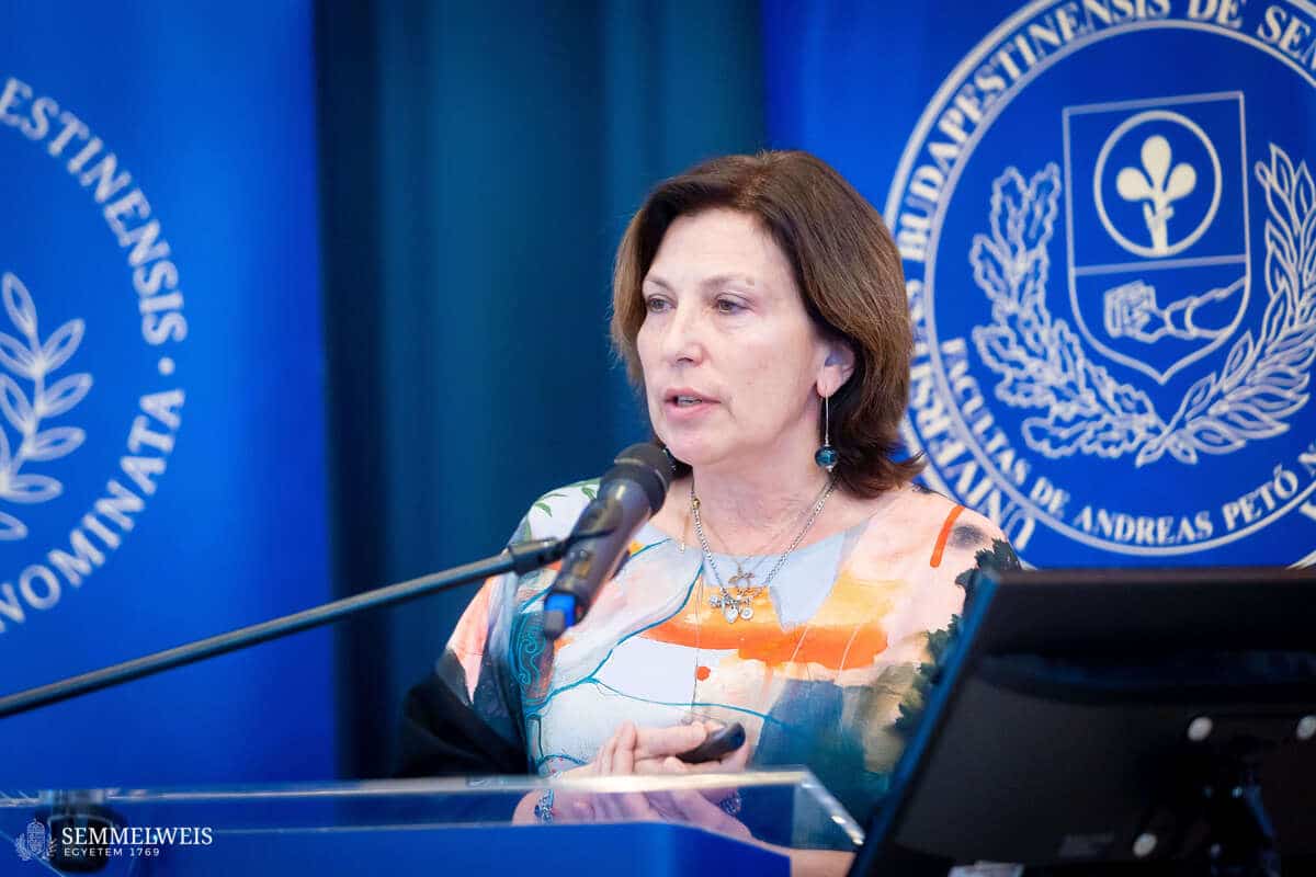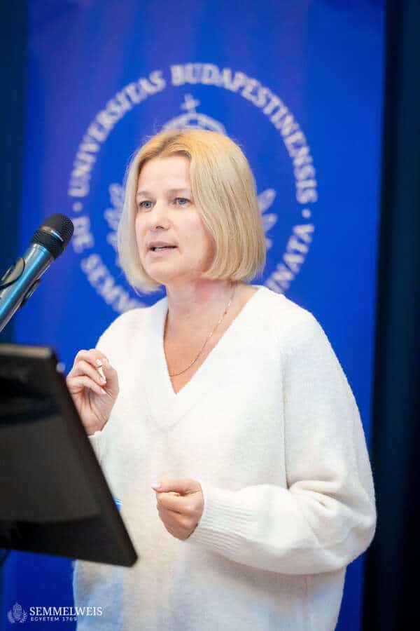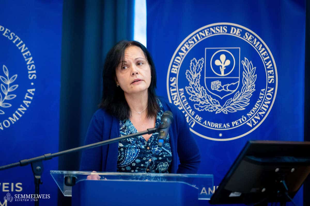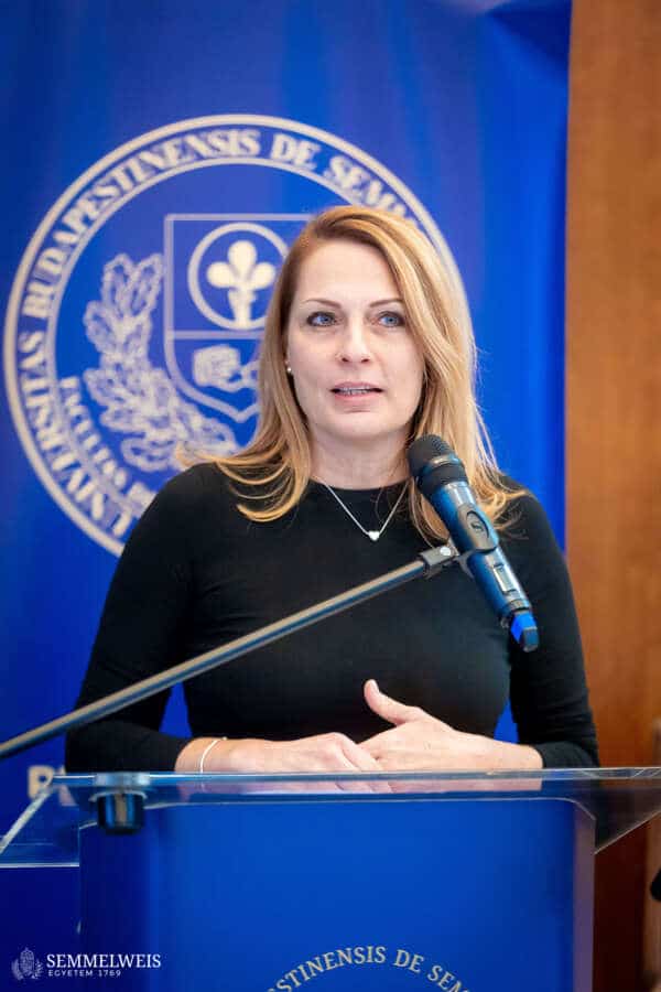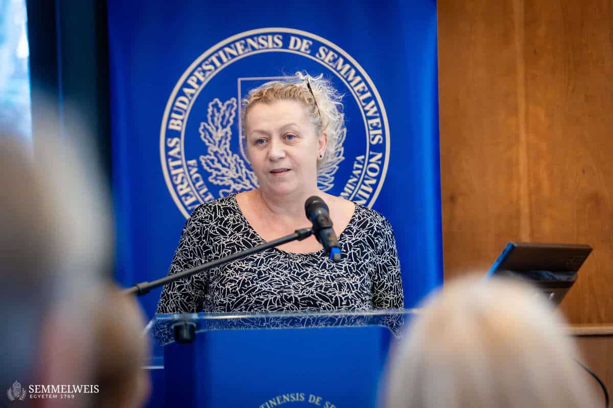 „A jövőnket az fogja eldönteni, hogy mennyire tudunk a tradícióink megtartása mellett az új társadalmi és szakmai igényekre felfigyelni. Ezekre megoldásokat keresni és akár új együttműködéseket kötni” – hangsúlyozta megnyitó beszédében dr. Tenk Miklósné dr. Zsebe Andrea, dékán. Mint elmondta, a Kar életében az elmúlt évtized jelentős változásokat hozott, de a közösség elköteleződése a Pető-ügy, az oktatási minőség és a szakmai megújulás iránt töretlen maradt. A társadalmi és szakmai igények gyors átalakulása ma már szükségessé teszi, hogy a hagyományok megőrzése mellett az intézmény tudományosan megalapozott, innovatív válaszokat adjon. Az egyetemi integráció óta eltelt nyolc év is ezt a szemléletet erősítette: a kari és intézeti vezetők egységben dolgoztak az intézményi stratégia megvalósításán, ami hozzájárult ahhoz, hogy a konduktív pedagógia nemzeti alapértékké, sőt Hungarikummá váljon. Az ezt tanúsító oklevelet és díjat Dékán Asszony a szimpóziumon is bemutatta, jelezve, hogy ez az elismerés a szakmai közösségünk sikere. Rámutatott arra is: a szimpóziumon bemutatott kutatások és innovációk nem elszigetelt tudományos eredmények, hanem olyan fejlesztések, amelyek közvetlenül beépülnek az akadémiai programokba, a továbbképzésekbe és a hazai–nemzetközi gyakorlóhelyek szakmai munkájába. Ezek a területek így egymást erősítve járulnak hozzá a konduktív pedagógia korszerűsítéséhez és a gyakorlati munka hatékonyságnöveléséhez.