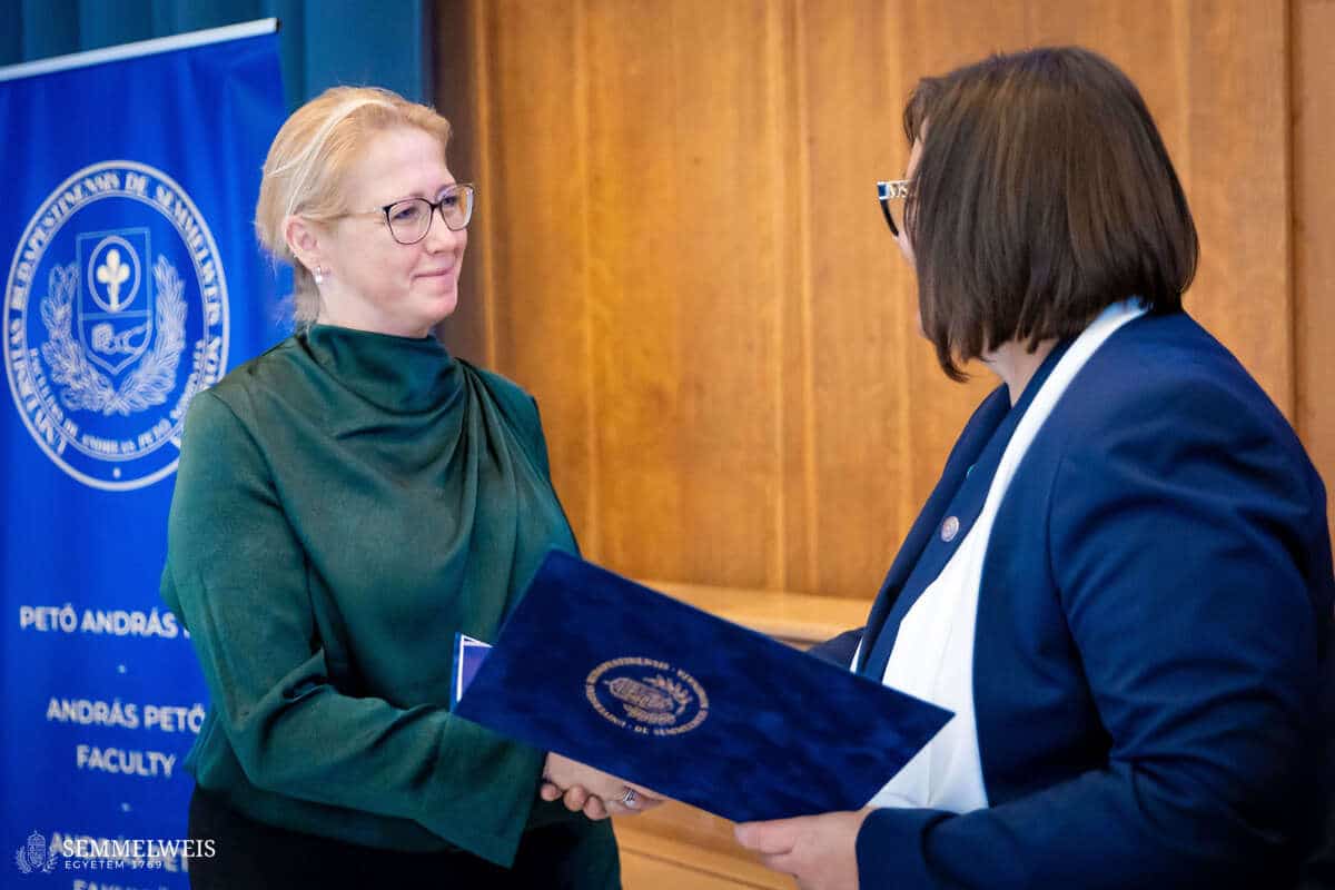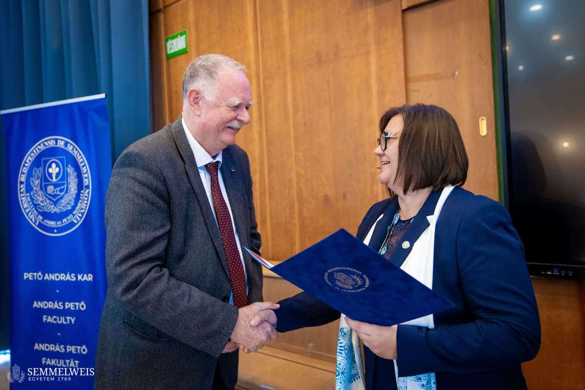 A délelőtti program zárásaként a Pető András Kar kiemelt támogatóinak köszöntése következett, akik elismerő oklevelet vehettek át dr. Tenk Miklósné dr. Zsebe Andrea dékántól és Feketéné dr. Szabó Éva stratégiai rektorhelyettestől és Konduktív Pedagógiai Központ igazgatótól.