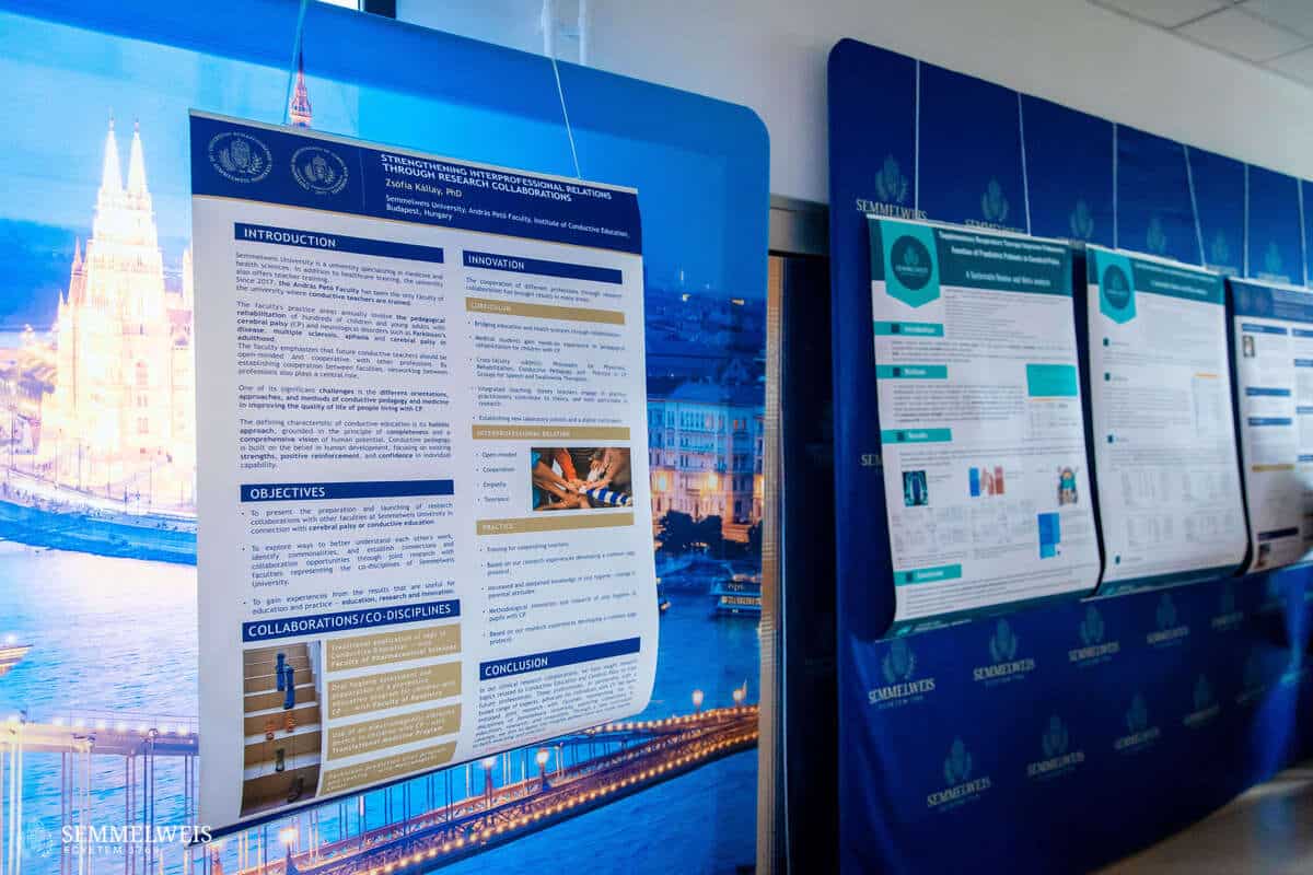 A szimpóziumot egy kettős kiállítás színesítette. A 2025/2026-os tanév hallgatói kutatásait bemutató poszterek mellett a szimpóziumot megelőző Jótékonysági Gálán kiállított fotókból válogattunk. Számos archív fotó mellett Horváth Petra felvételei adtak ízelítőt a konduktív nevelés 75 éves történetéből.