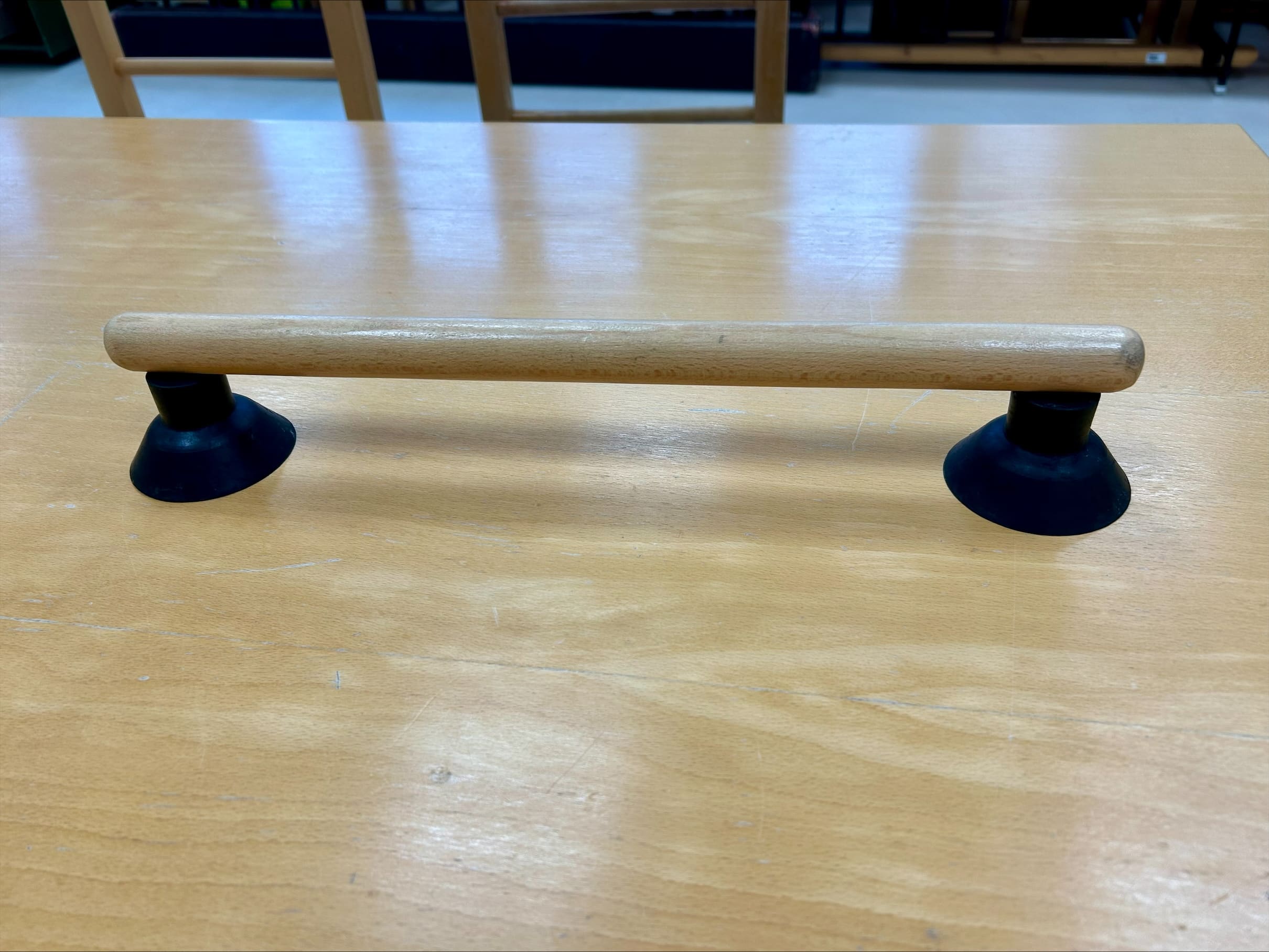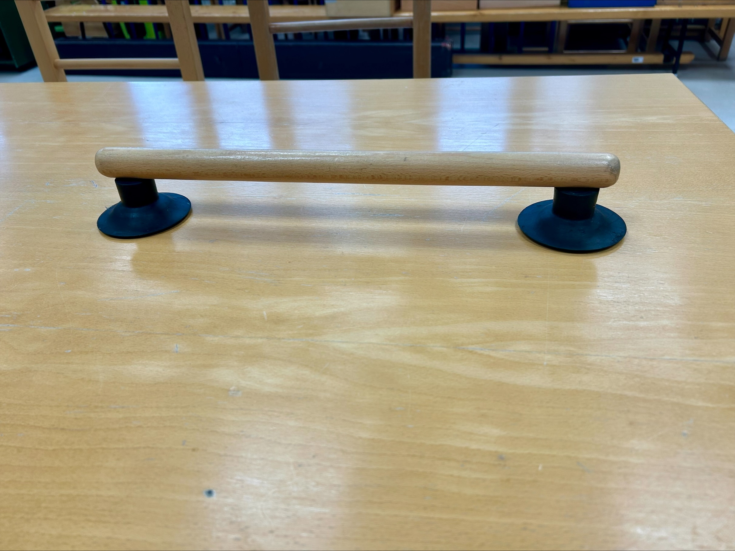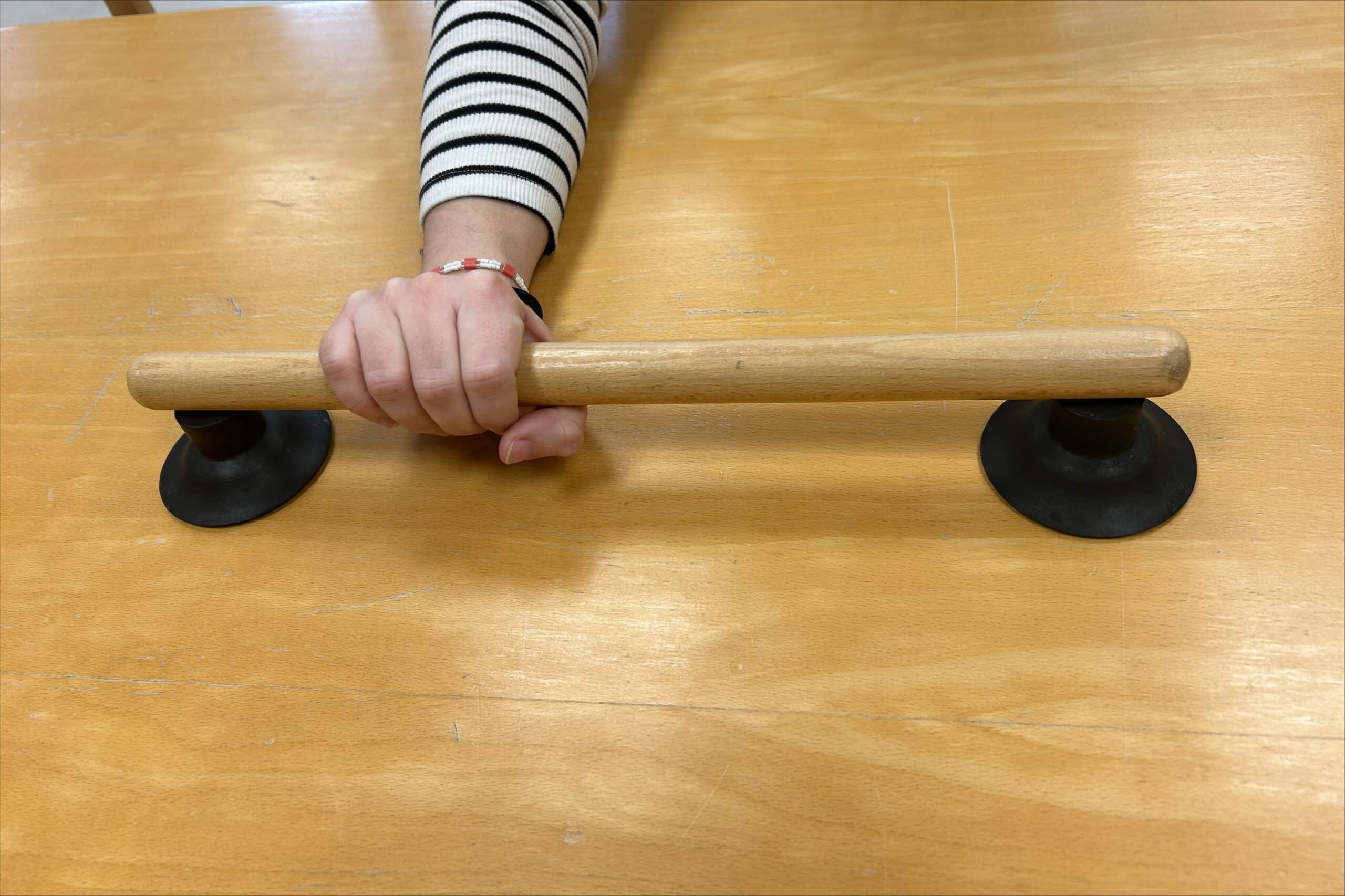 A fából készült pálca tapadókoronggal ellátva olyan praktikus segédeszköz, amely asztalra vagy sima felületre rögzíthető, és biztonságos kapaszkodási pontot nyújt. Elsősorban a stabilitás növelésére és az önállóbb tevékenység végzésére szolgál.