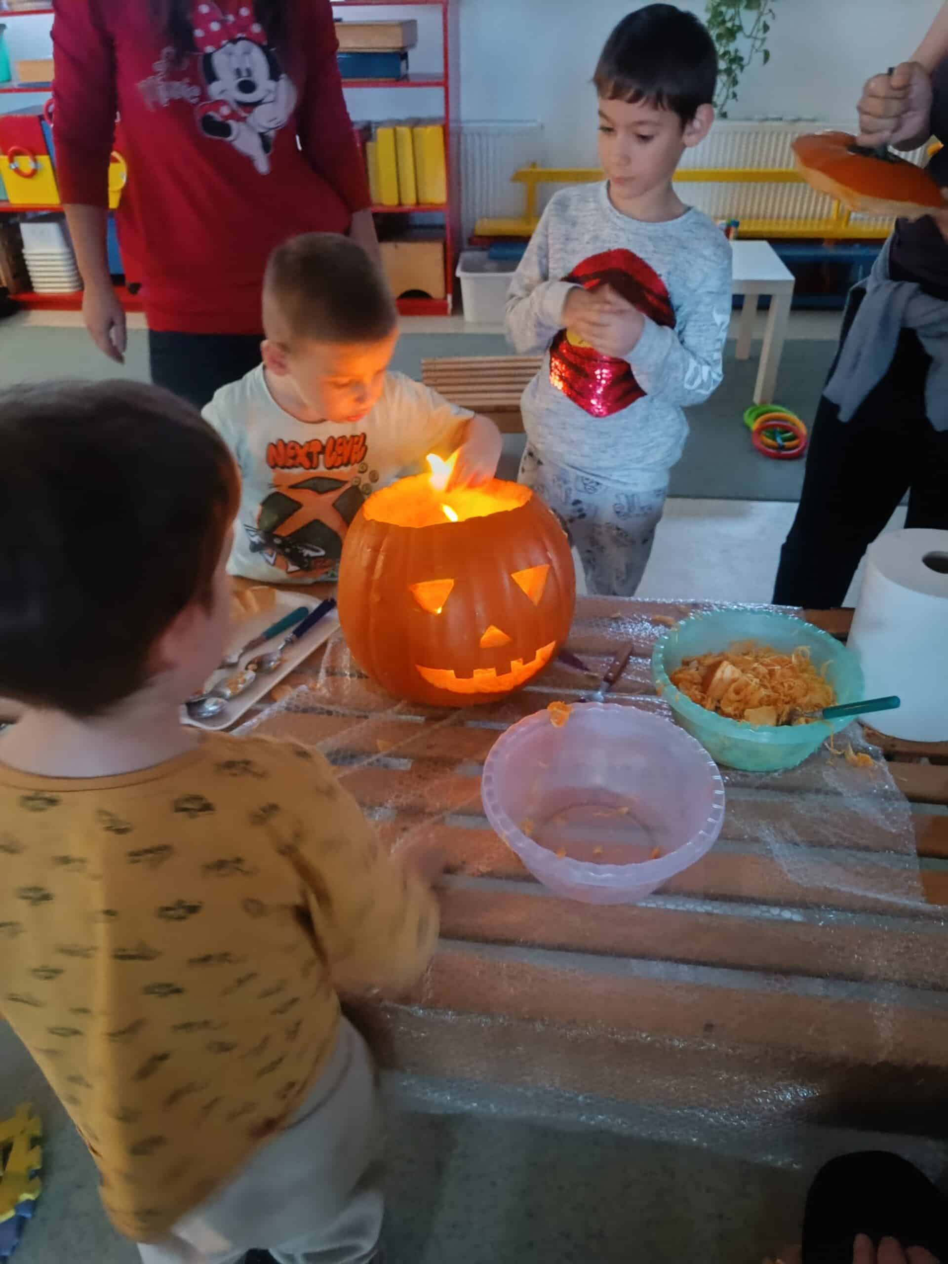 Ahogy a napok egyre rövidültek, az idő hidegebbre fordult, és a természet felkészült a téli pihenésre, a negyedik és ötödik csoportunk gyermekei lelkesen készítették Halloweenhez és Márton naphoz kapcsolódó lámpásaikat. A mécsesek fénye meghitt, otthonos hangulatot teremtett csoportjainkban.