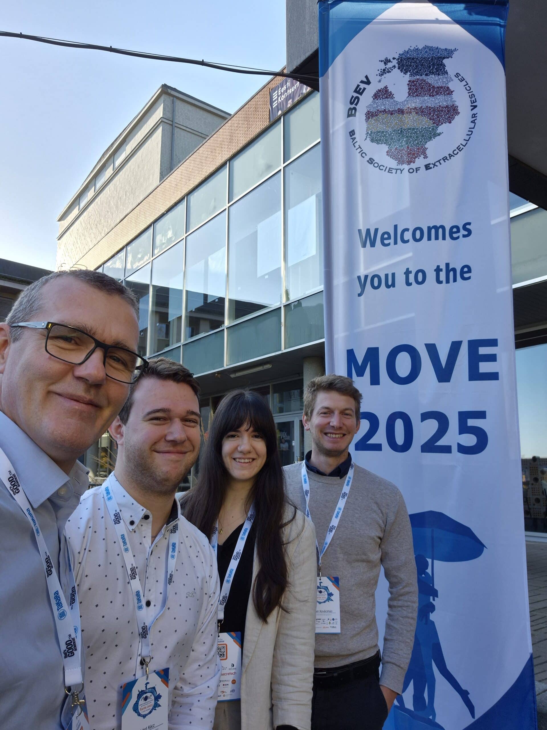 A MOVE 2025 Symposium október 7–10 között zajlott Baltic Society of Extracellular Vesicles szervezésében Tartu-ban, Észtországban, és több mint 20 európai nemzeti extracelluláris vezikula (EV) társaságot hozott össze. A rendezvény fókuszában a „vesicles research” gyors fejlődése és kutatói mobilitás állt — célként tűzve ki a tudományos együttműködések erősítését, akár ipari és akadémiai szektorok között is. A nemzeti EV társaságok MOVE ösztöndíjai által támogatott kutatók is részvételi lehetőséget kaptak, elősegítve a tudományos utánpótlás bevonását az EV-kutatásba. Intézetünk EV kutatócsoportjából Dr. Giricz Zoltán, Dr. Kovácsházi Csenger, mint szervezők és szekcióelnökök, Kapui Dóra és Rácz Richárd pedig poszter prezentációkkal vettek részt. A konferencia záróeseményén bejelentették, hogy a MOVE2027-t a HSEV Budapesten fogja megrendezni.