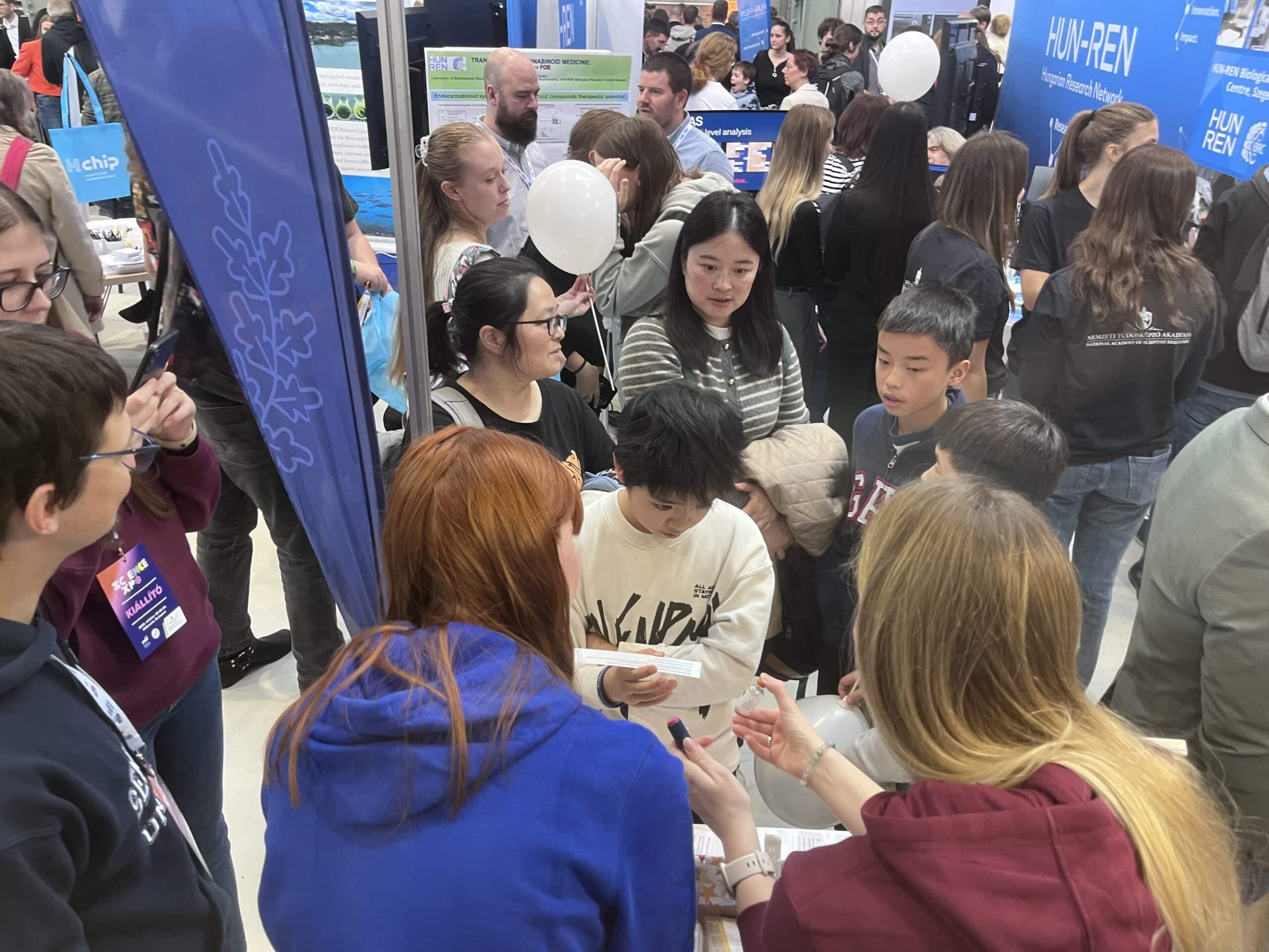 Lenyűgöző élmény volt látni, ahogy a fiatal látogatók érdeklődéssel fordultak kutatásaink felé, és kérdéseikkel egyre mélyebbre merültek a farmakológia, a biotechnológia és a bioinformatika izgalmas világába. Minden érdekelte őket – a molekulák kapcsolódásától és az új vegyületek létrejöttétől egészen legfrissebb, mikro-RNS-hez kapcsolódó kutatásainkig, amelyet a HU-RIZONT Nemzetközi Kiválósági Kutatási Együttműködési Program támogat.