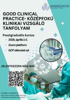 A Semmelweis Egyetem Farmakológiai és Farmakoterápiás Intézete Good Clinical Practice – Középfokú klinikai vizsgáló tanfolyamot hirdet posztgraduális képzés keretében.