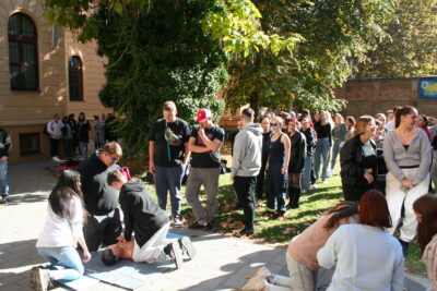 A gyakorlatot a nappali tagozatos mentőápoló osztály irányítja, akik 20 percen keresztül, hat fantomon vezetik a mellkaskompresszió gyakorlást — csecsemőkortól felnőttkorig.