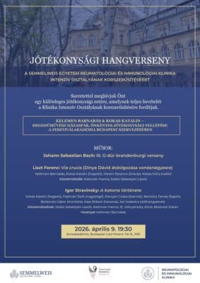 A Semmelweis Egyetem Reumatológiai és Immunológiai Klinikája jótékonysági hangversenyt szervez, amelynek teljes bevételét a Klinika Intenzív Osztályának korszerűsítésére fordítják.