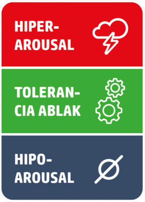 A tolerancia ablak az idegrendszer optimális aktivációs zónája, ahol képesek vagyunk hatékony érzelemszabályozásra, reflektív gondolkodásra és kapcsolódásra. Ha túl nagy stressz ér, hiper- (pl. szorongás, pánik) vagy hipoarousal (pl. zsibbadás, lelassulás) állapotba kerülhetünk, ahol ezek a képességek beszűkülnek.