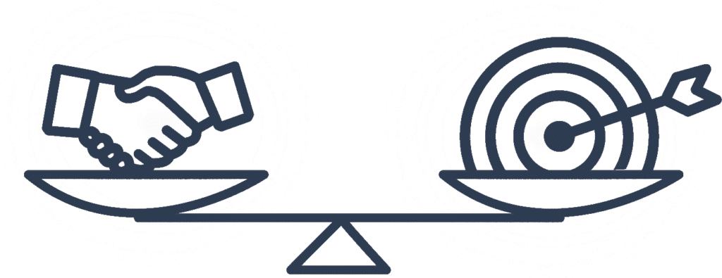 Az interperszonális vagy kapcsolati hatékonyság azt jelenti, hogy egyensúlyt találunk a kapcsolataink fenntartása és a céljaink elérése között.