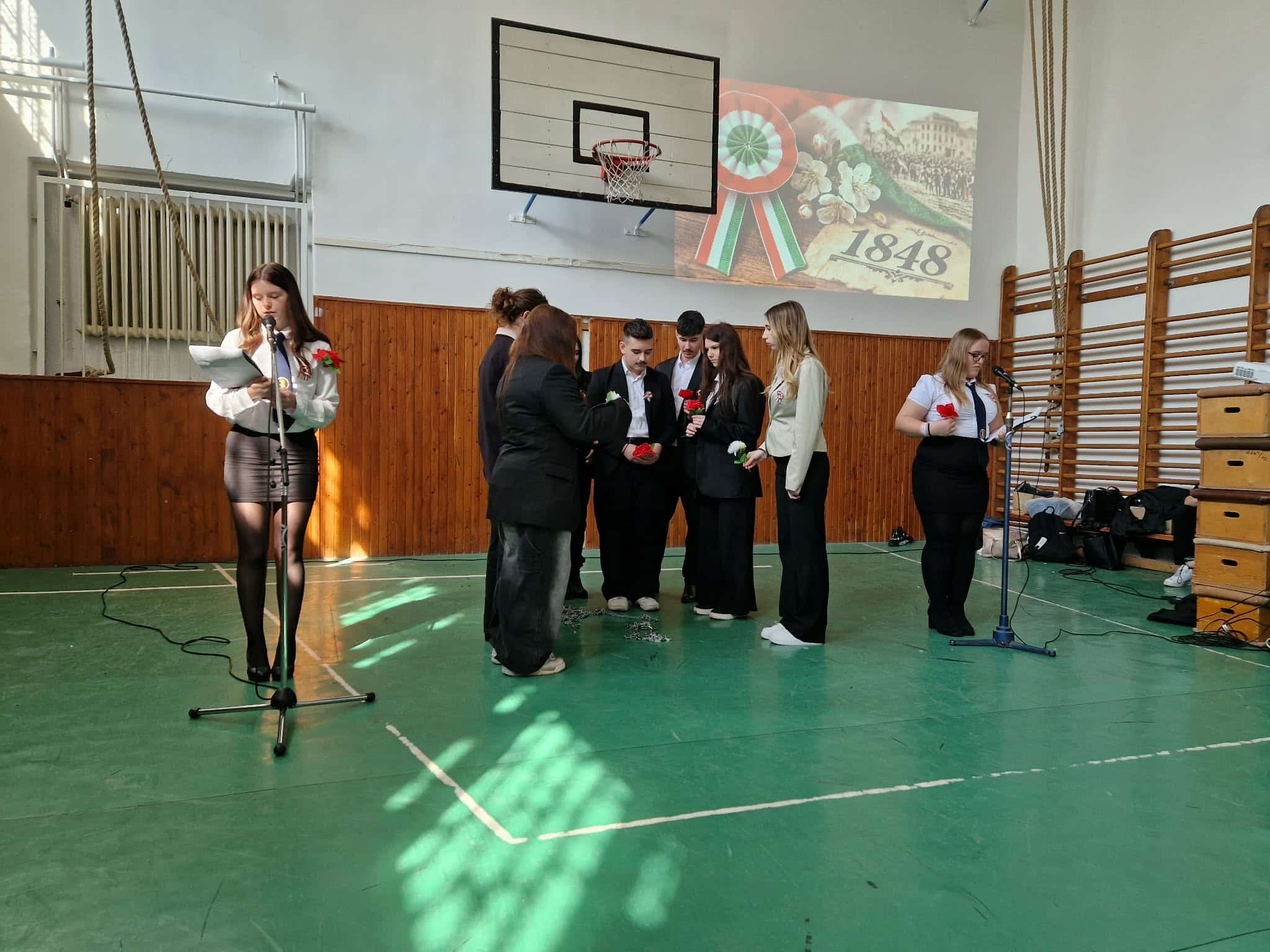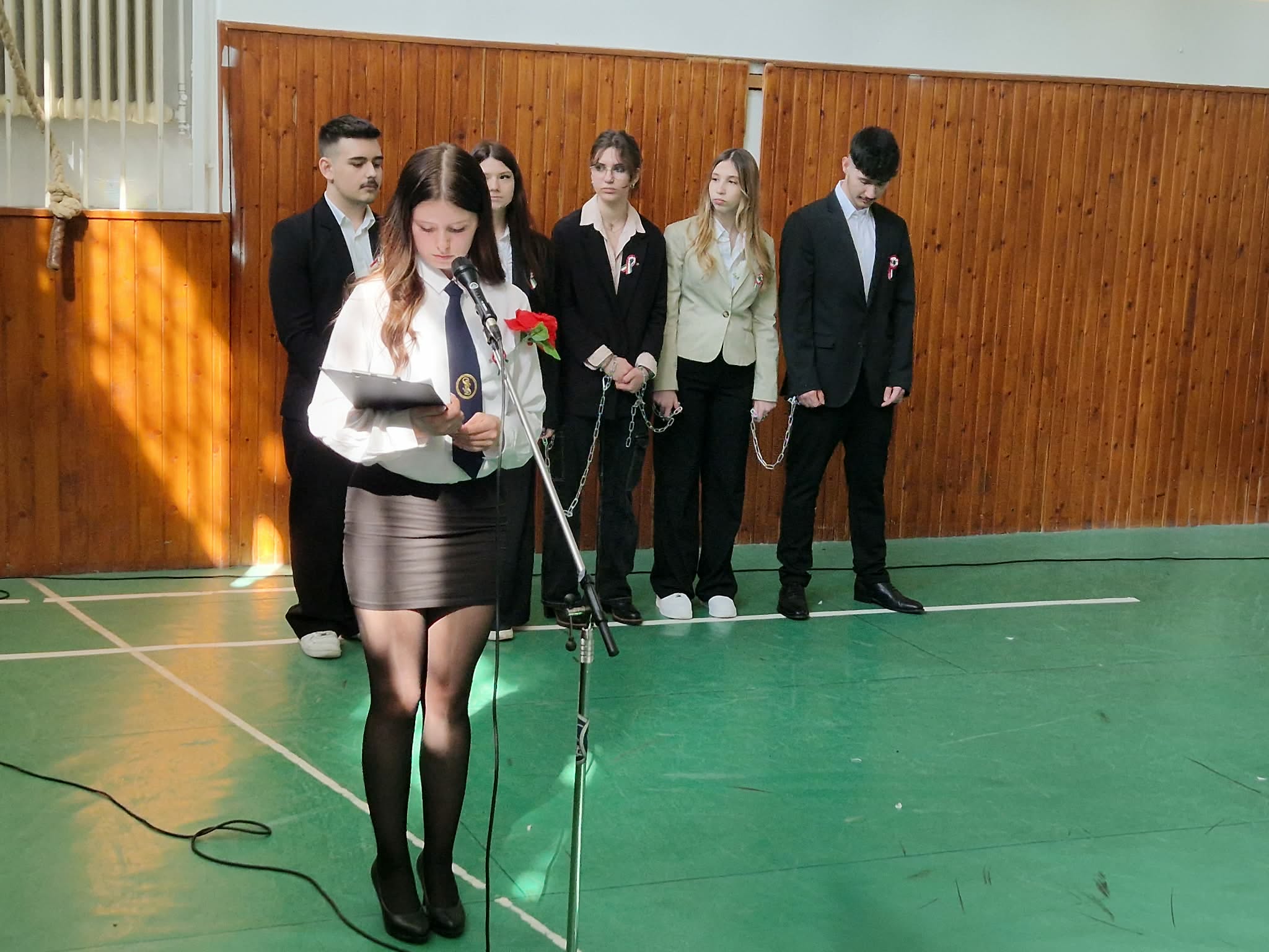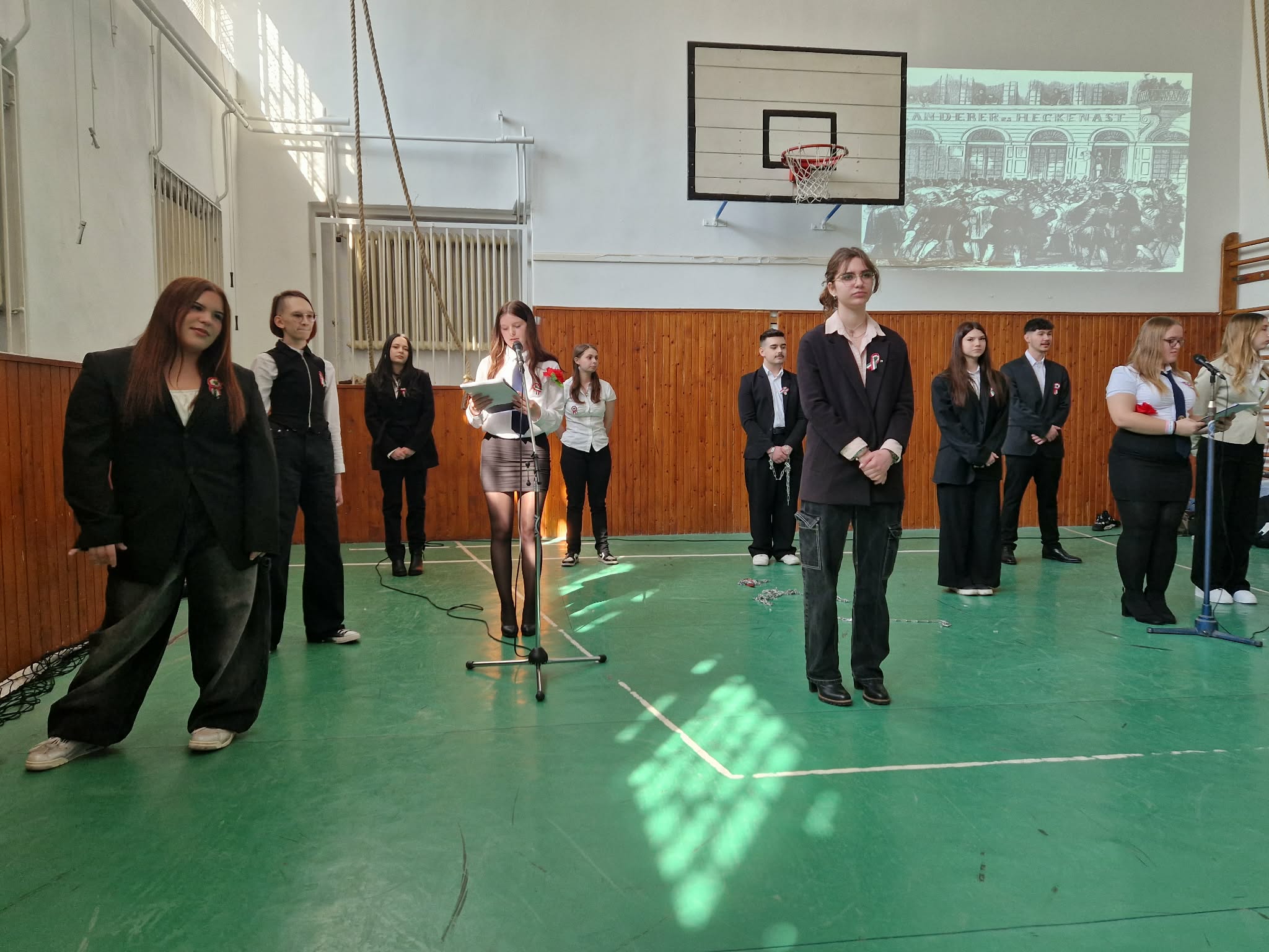 Iskolánkban méltó módon emlékeztünk meg a március 15-i forradalom és szabadságharc eseményeiről. A 10. évfolyam diákjai ünnepi műsor keretében idézték fel a történelmi pillanat hangulatát és legfontosabb történéseit. A színpadon Petőfi Sándor és Táncsics Mihály alakja is megelevenedett, miközben elhangzott a 12 pont is. A műsor egyik jelképes mozzanataként a diákok láncaikat ledobva mutatták meg a forradalom célját: a szabadság kivívását. Az előadás méltó tisztelgés volt a magyar történelem egyik meghatározó eseménye előtt.