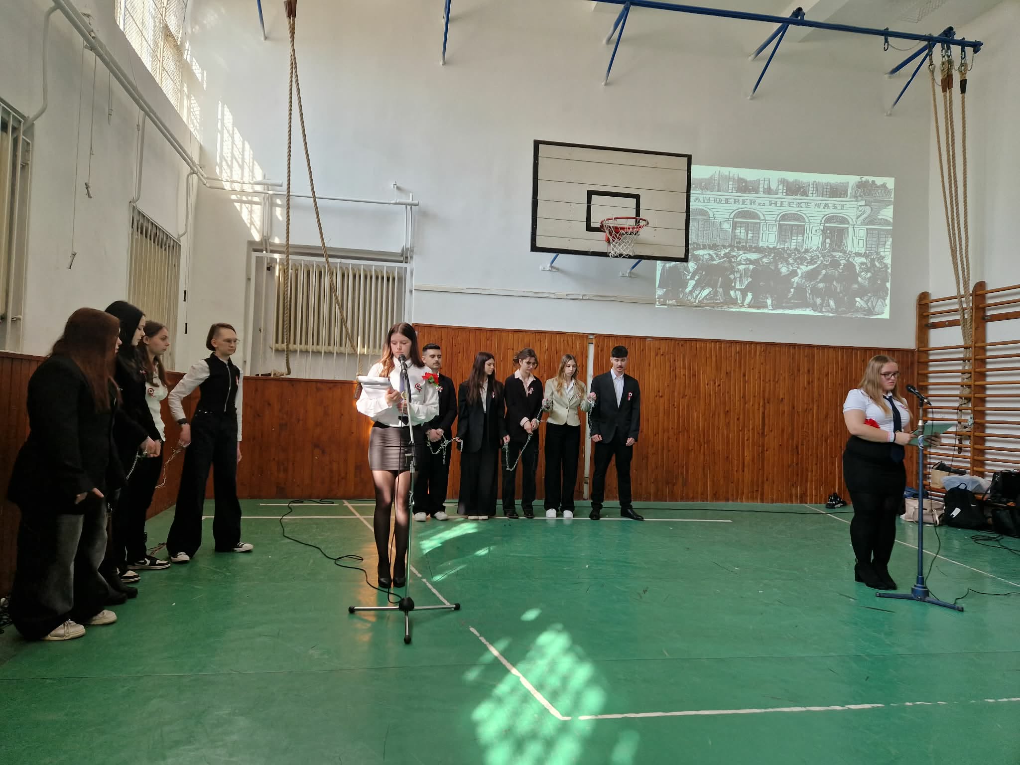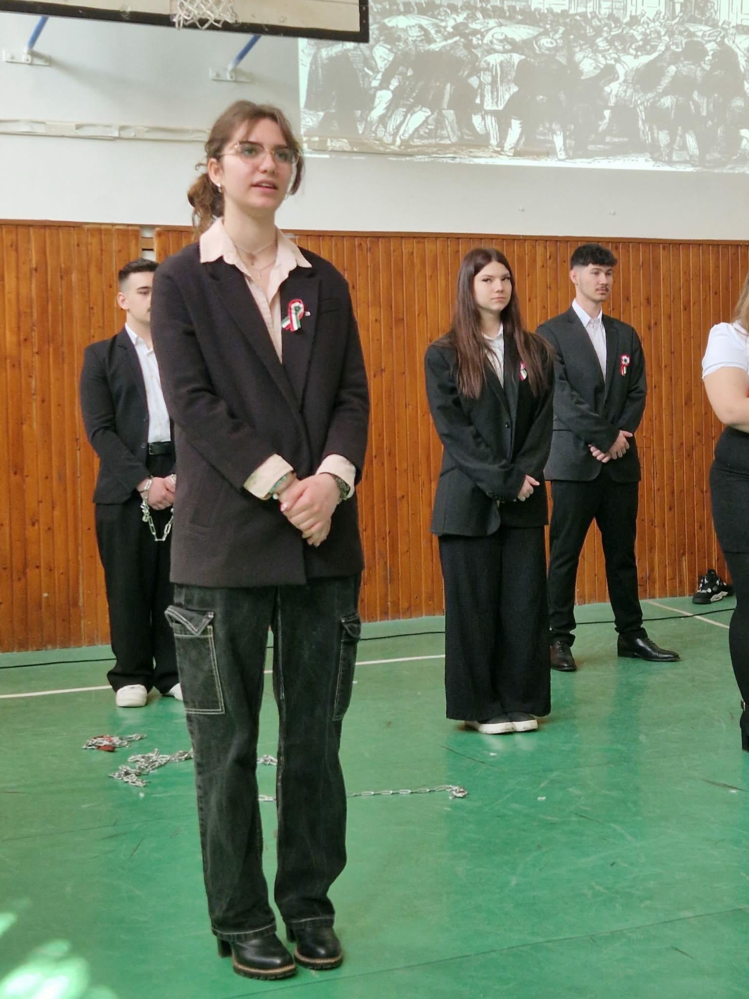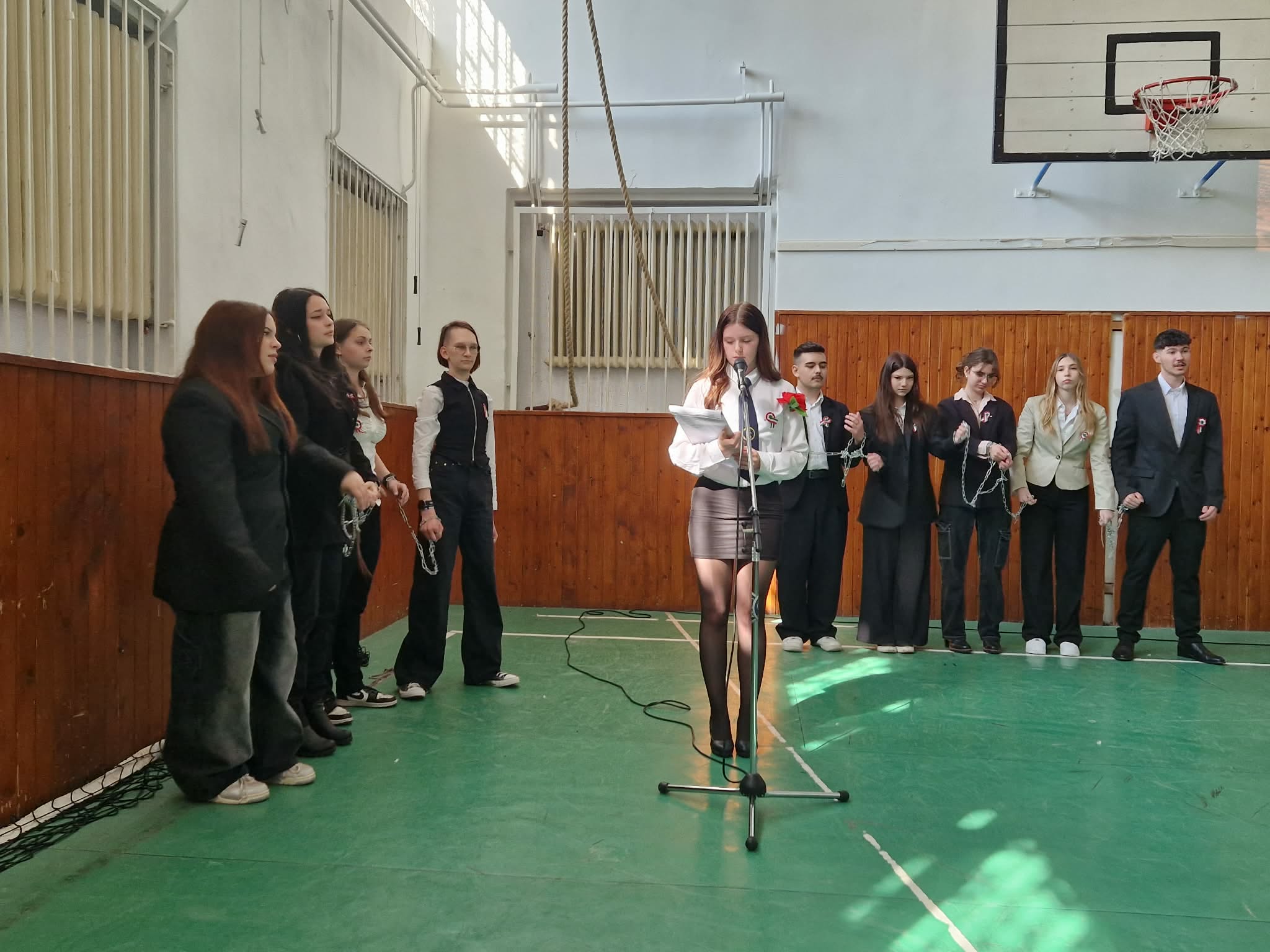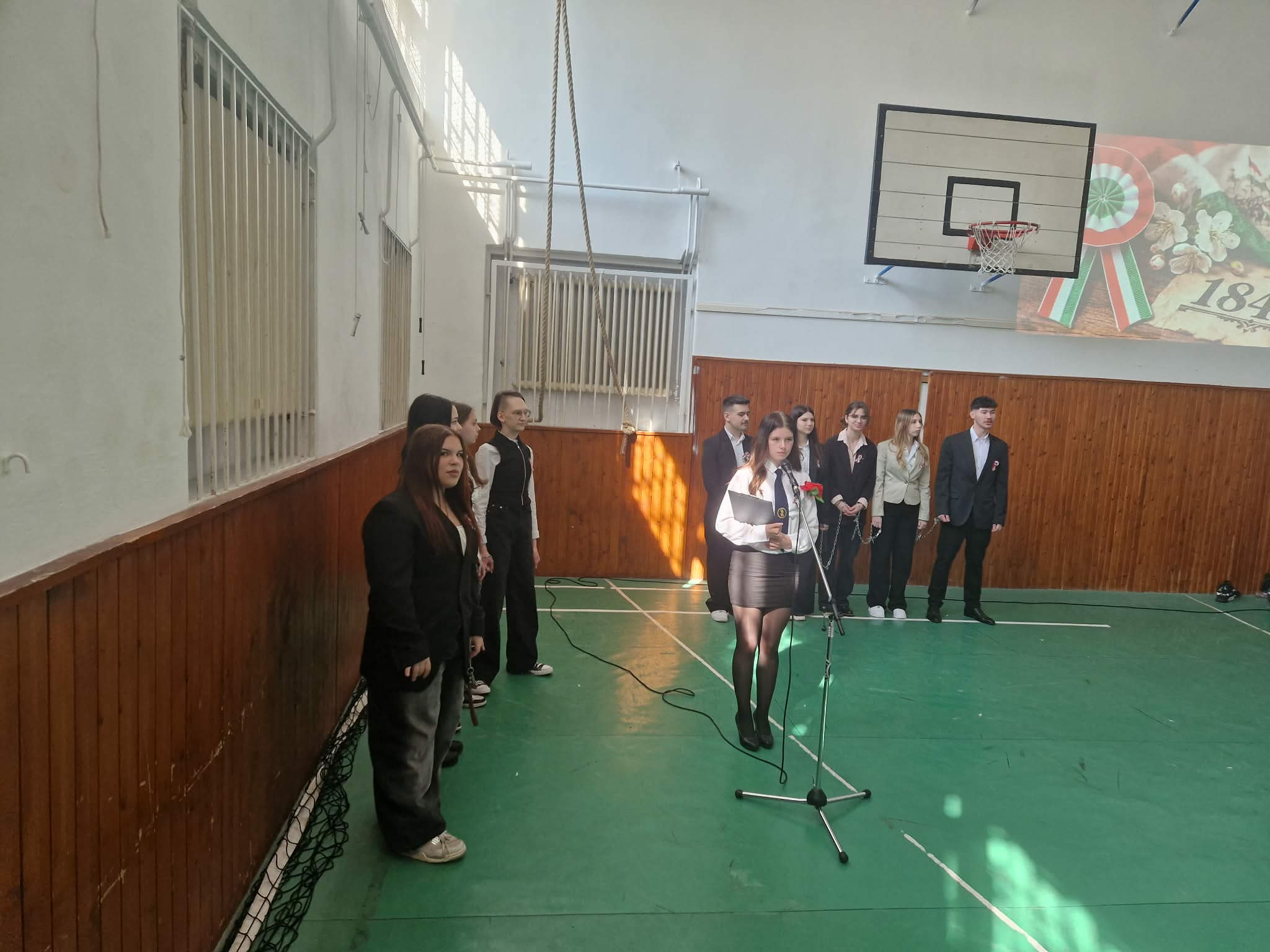 Iskolánkban méltó módon emlékeztünk meg a március 15-i forradalom és szabadságharc eseményeiről. A 10. évfolyam diákjai ünnepi műsor keretében idézték fel a történelmi pillanat hangulatát és legfontosabb történéseit. A színpadon Petőfi Sándor és Táncsics Mihály alakja is megelevenedett, miközben elhangzott a 12 pont is. A műsor egyik jelképes mozzanataként a diákok láncaikat ledobva mutatták meg a forradalom célját: a szabadság kivívását. Az előadás méltó tisztelgés volt a magyar történelem egyik meghatározó eseménye előtt.
