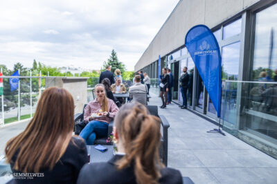 Dr. Merkely Béla rektor hangsúlyozta, hogy a NET épülete és az egyetem kiemelkedik Budapest látképéből, az új terasz családiasabbá teszi az egyetemet.