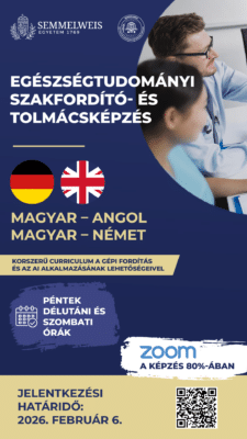 2026 februárjában újra elindítjuk Egészségtudományi szakfordító- és tolmácsképzésünket MAGYAR-ANGOL és MAGYAR-NÉMET nyelvpárban.
