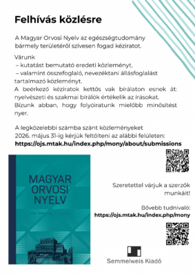 A Magyar Orvosi Nyelv az egészségtudomány bármely területéről szívesen fogad kéziratot.