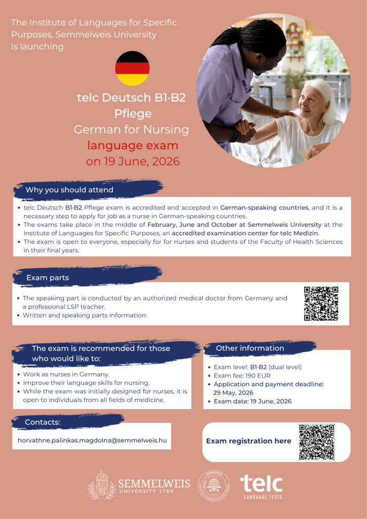 telc Deutsch B1·B2 Pflege German for Nursing language EXAM organised by the Institute of Languages for Specific Purposes